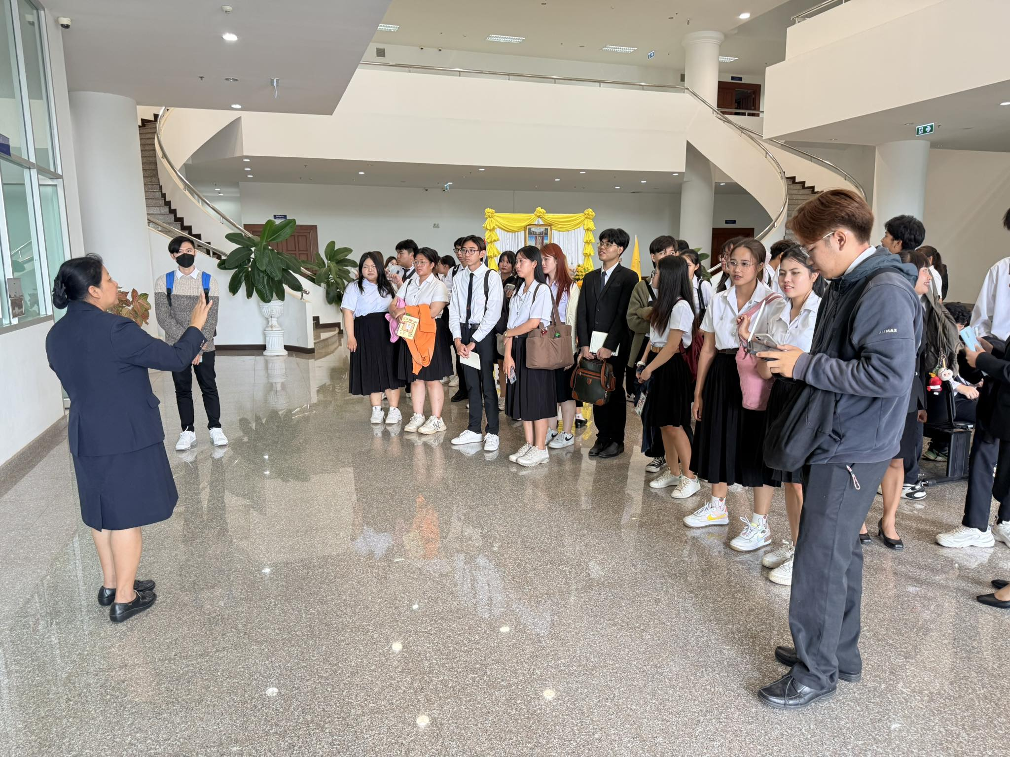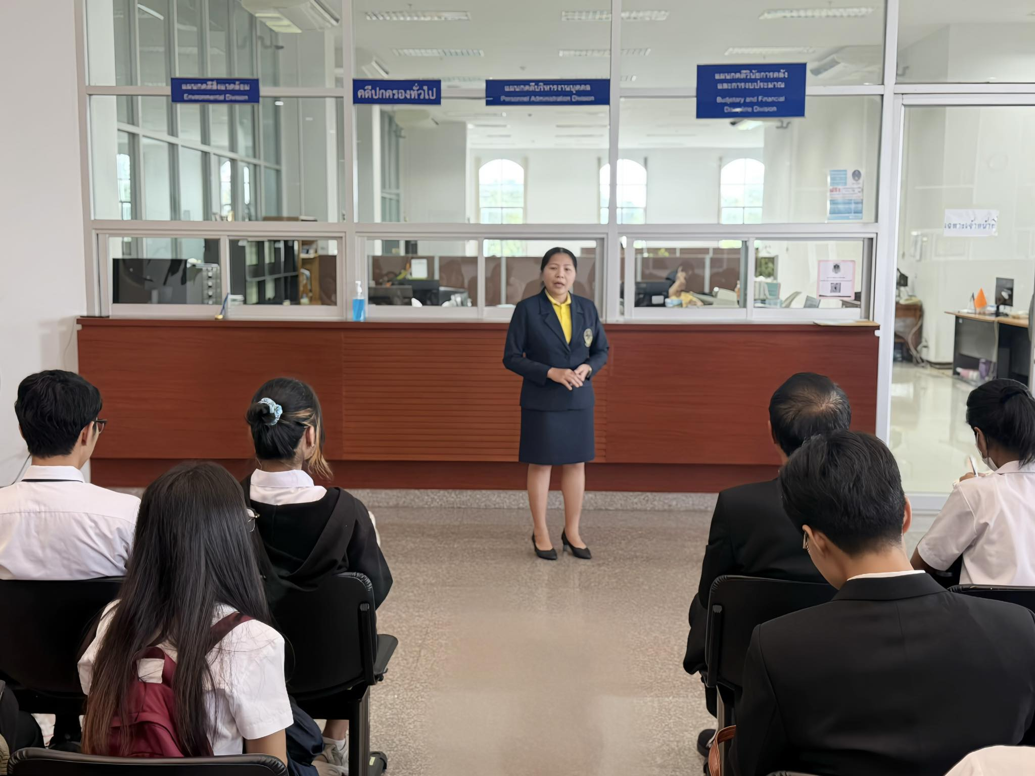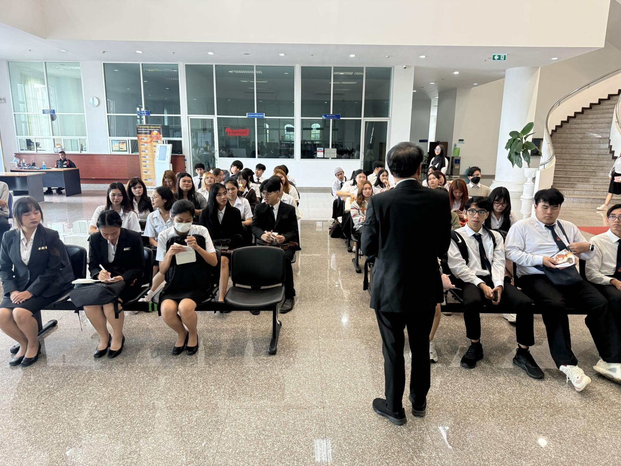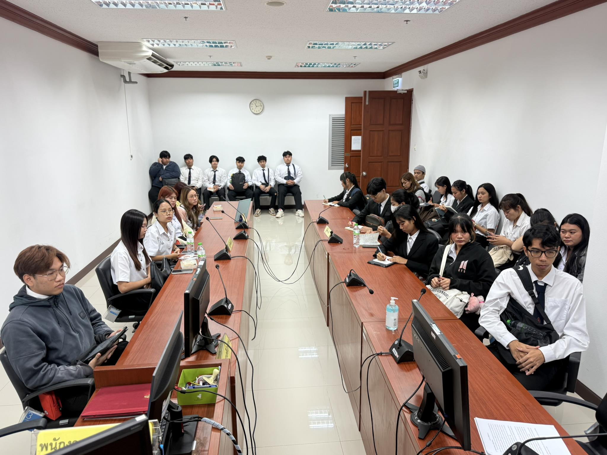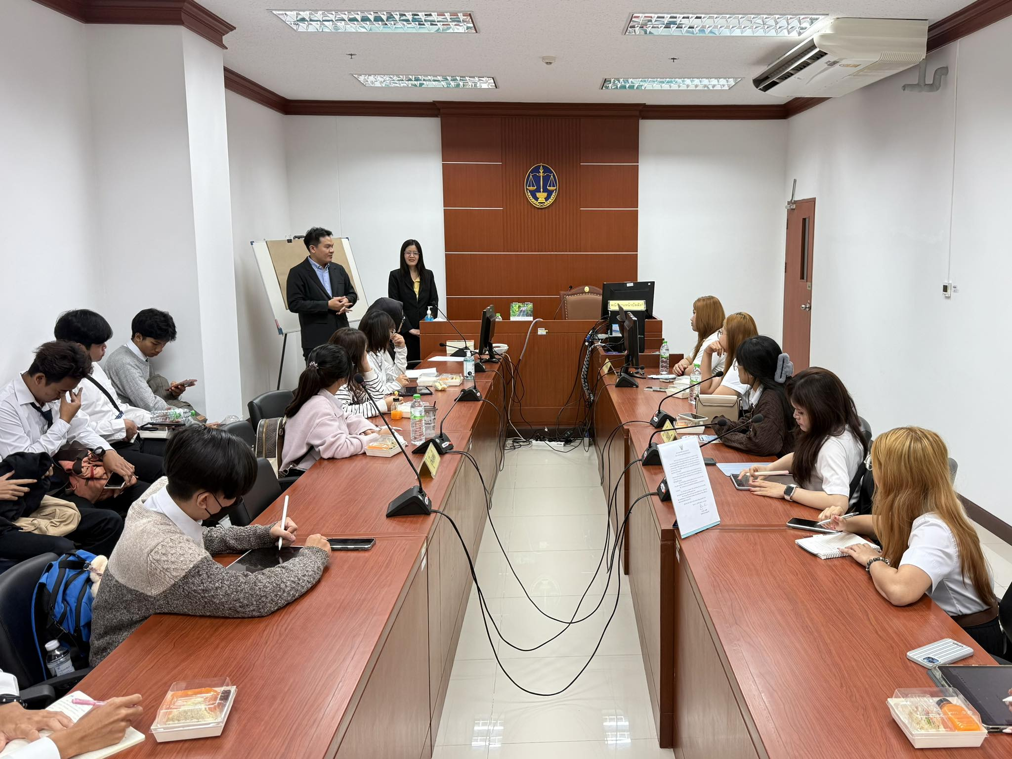 ถัดมา คณะอาจารย์และนักศึกษาได้มีโอกาสสัมผัสประสบการณ์จริงจากการศึกษาดูงานการนั่งพิจารณาคดี ณ ห้องพิจารณาคดี พร้อมเยี่ยมชมส่วนงานสำคัญต่างๆ ภายในอาคารศาลปกครองอุดรธานี อาทิ ห้องไต่สวน กลุ่มสนับสนุนงานคดีและบังคับคดีปกครอง ห้องปฏิบัติการ (Operation Room) และห้องระบบงานคดีปกครองอิเล็กทรอนิกส์ ซึ่งช่วยให้นักศึกษาได้เห็นภาพรวมของกระบวนการยุติธรรมทางปกครองอย่างเป็นรูปธรรม