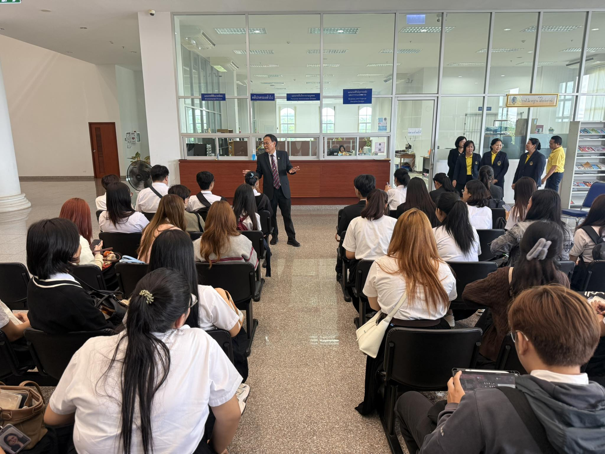 คณะอาจารย์และนักศึกษาได้รับเกียรติอย่างสูงจากนายยรรยง ธัญทะพิพงศ์ อธิบดีศาลปกครองอุดรธานี ซึ่งได้กล่าวต้อนรับคณะศึกษาดูงานอย่างอบอุ่น พร้อมให้โอวาทแก่นักศึกษาในการทำความเข้าใจบทบาทและความสำคัญของศาลปกครองในการอำนวยความยุติธรรมแก่ประชาชน