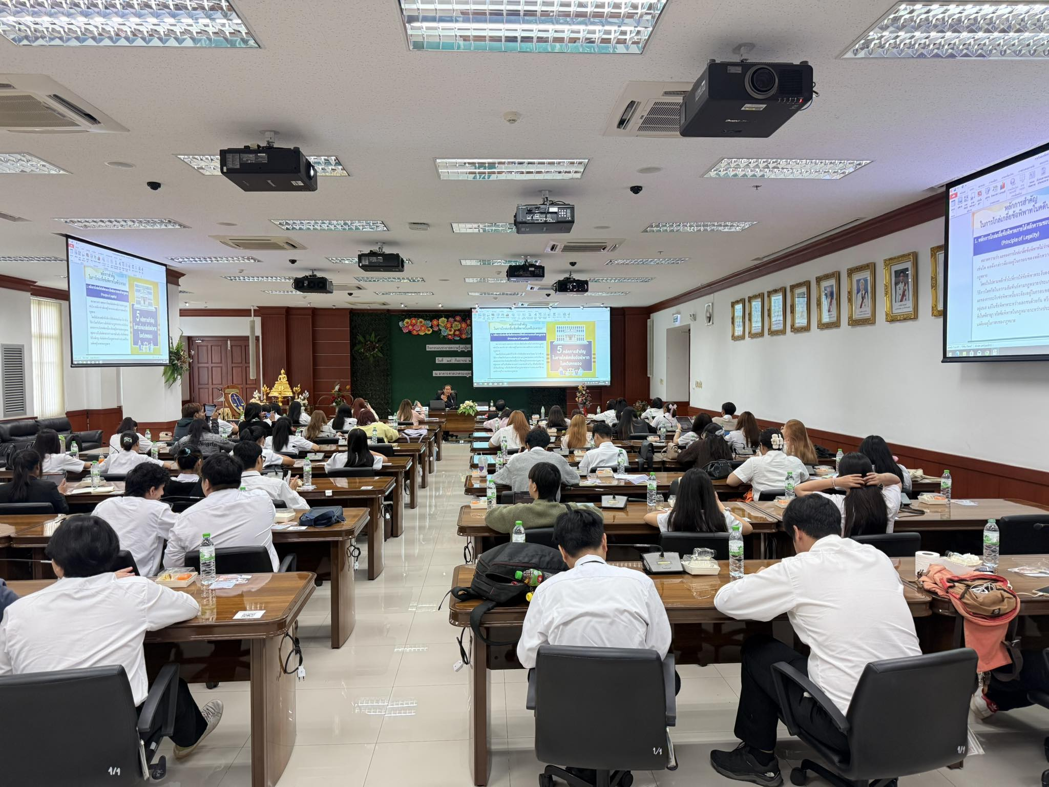 จากนั้น สำนักงานศาลปกครองอุดรธานีได้จัดให้มีการบรรยายพิเศษ โดยได้รับเกียรติจากวิทยากรผู้ทรงคุณวุฒิ ได้แก่ นายยุทธการ ห้าวหาญ พนักงานคดีปกครองชำนาญการพิเศษ หัวหน้ากลุ่มงานช่วยตุลาการ และนายสุรัตน์ ทองสมบัติ พนักงานคดีปกครองชำนาญการ ซึ่งได้ร่วมกันถ่ายทอดความรู้ในหัวข้อที่น่าสนใจและเป็นประโยชน์อย่างยิ่ง ได้แก่ “พระราชบัญญัติจัดตั้งศาลปกครองและวิธีพิจารณาคดีปกครอง พ.ศ. ๒๕๔๒ การไกล่เกลี่ยข้อพิพาททางคดีปกครองและระบบงานคดีปกครองอิเล็กทรอนิกส์” ซึ่งครอบคลุมหลักการ โครงสร้าง และขั้นตอนการดำเนินคดีปกครอง
