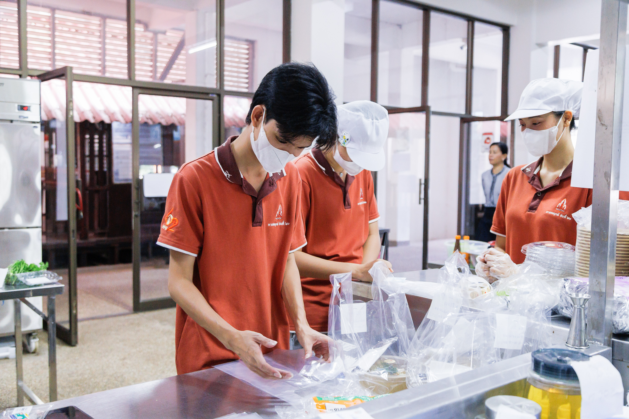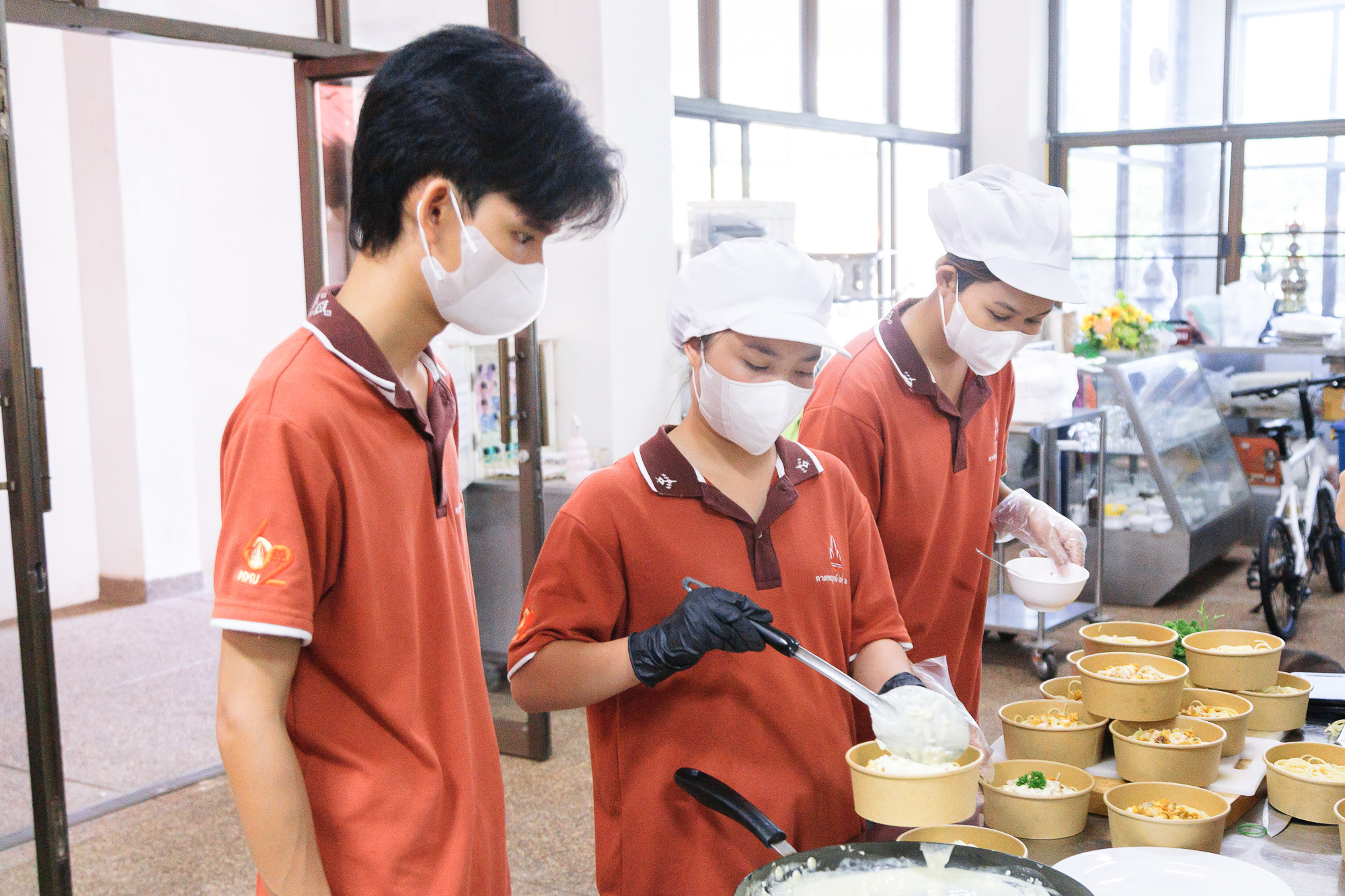 วันที่ 27 ตุลาคม 2568 ผู้ช่วยศาสตราจารย์ ดร.สุนทรี บูชิตชน คณบดีคณะสหวิทยาการ พร้อมผู้บริหารร่วมเยี่ยมชมนักศึกษา ในกิจกรรมฝึกปฏิบัติขายอาหาร “Story of Golden Snails” จากผลิตภัณฑ์ชุมชน โดยมี ผู้ช่วยศาสตราจารย์ ดร.จตุราพร สีหาบุตร และ ผู้ช่วยศาสตราจารย์ ดร.มัลลิกา จันทรังษี เป็นผู้ดำเนินกิจกรรม โดยจัดขึ้นภายใต้แนวคิด Active Learning โดยได้รับแรงบันดาลใจจากการลงพื้นที่เรียนรู้ (Experimental Learning) ณ กลุ่มวิสาหกิจชุมชนหอยเชอรี่สีทอง จังหวัดหนองคาย จากโครงการการเพิ่มมูลค่าหอยเชอรี่สีทองด้วยการแปรรูปเป็นอาหารพื้นถิ่นที่มีมูลค่าใหม่ (หอยยอใบข่า) ซึ่งได้เปิดโอกาสให้นักศึกษาร่วมระดมความคิดต่อยอดแนวทางการสร้างมูลค่าเพิ่มให้ผลิตภัณฑ์ท้องถิ่น และทดลองพัฒนาเมนูอาหารเชิงสร้างสรรค์ (Product Innovation) จากวัตถุดิบ “หอยเชอรี่สีทอง” และดำเนินการขายอาหารเมนูจากหอยเชอรี่สสีทอง ได้แก่ สปาเก็ตตี้หอยเชอรี่สีทอง ผัดฉ่าหอยเชอรี่สีทอง ยำขนมจีนหอยเชอรี่สีทอง พร้อมเครื่องดื่ม และจำหน่ายในรูปแบบ Boxset