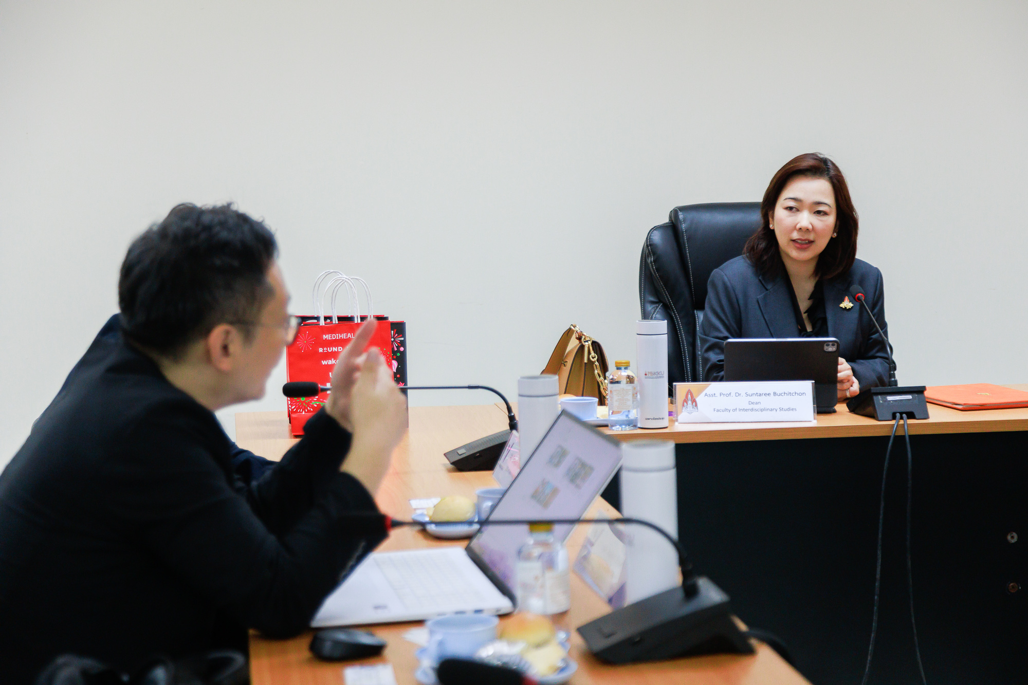 วันที่ 9 ธันวาคม 2568 ผู้ช่วยศาสตราจารย์ ดร.สุนทรี บูชิตชน คณบดีคณะสหวิทยาการ พร้อมคณะผู้บริหาร ได้แก่ อาจารย์ชาติภร เมืองโคตร มุงคุณแสน รองศาสตราจารย์ ดร.วัลลภา วงศ์ศีลธรรม รองคณบดีคณะสหวิทยาการ นางศิริวรรณ จิ๋วแหยม ผู้อำนวยการกองบริหารงานคณะสหวิทยาการ รวมถึงบุคลากรของคณะ ให้การต้อนรับผู้บริหารจาก Vaxion Korea Co., Ltd. ประเทศเกาหลีใต้ นำโดย Mr. Taiheyon Kim (Chief Executive Officer) และ Mr. Haejin Pyun (Director) ในโอกาสเยี่ยมเยือนและหารือความร่วมมือระหว่างสองหน่วยงาน