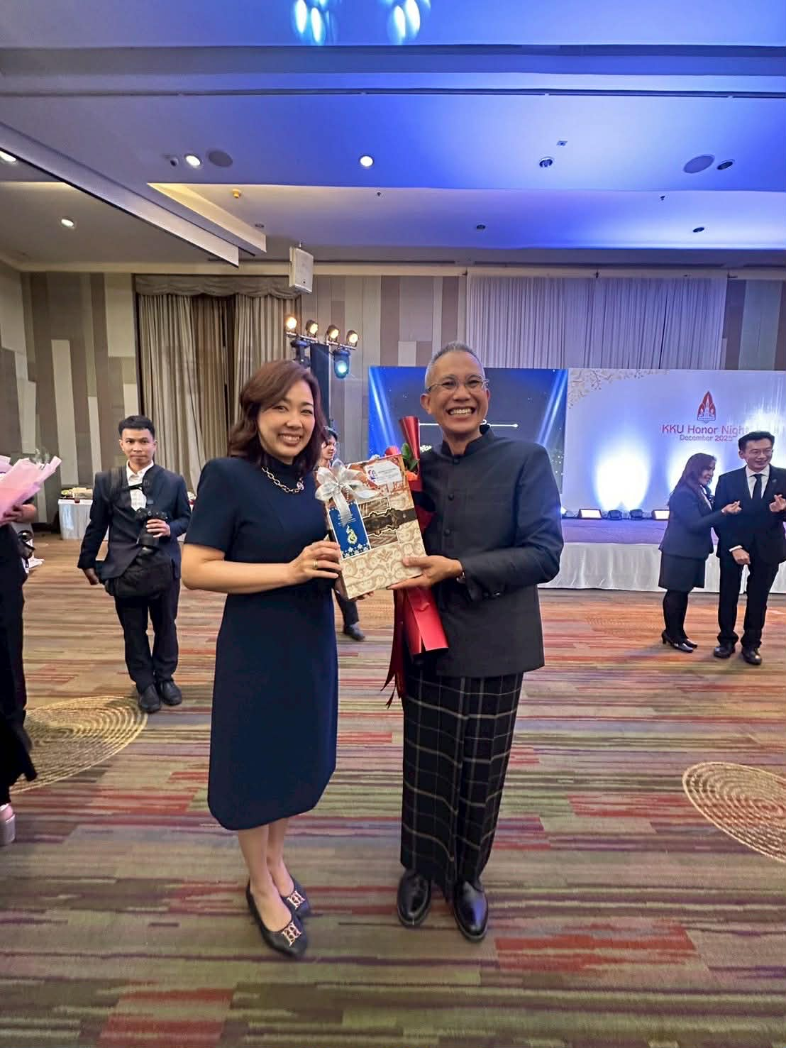 ในการนี้ ผู้ช่วยศาตราจารย์ ดร.สุนทรี บูชิตชน คณบดีคณะสหวิทยาการ มหาวิทยาลัยขอนแก่น ได้เข้าร่วมพิธีสำคัญดังกล่าวและได้มอบของที่ระลึกเพื่อแสดงความยินดีแก่ผู้ที่ได้รับรางวัลอันทรงเกียรติ สะท้อนถึงการร่วมยกย่องเชิดชูผู้ทำคุณประโยชน์ต่อมหาวิทยาลัยและสังคมไทย
