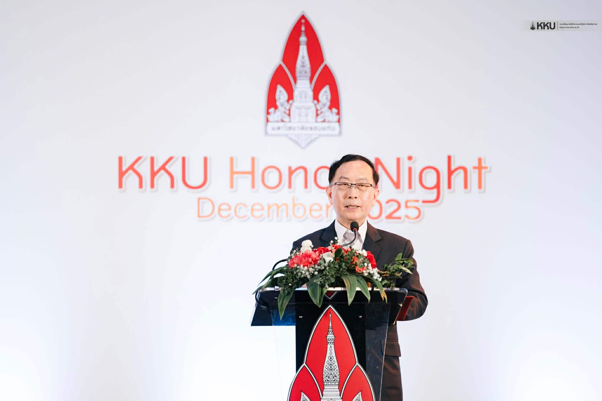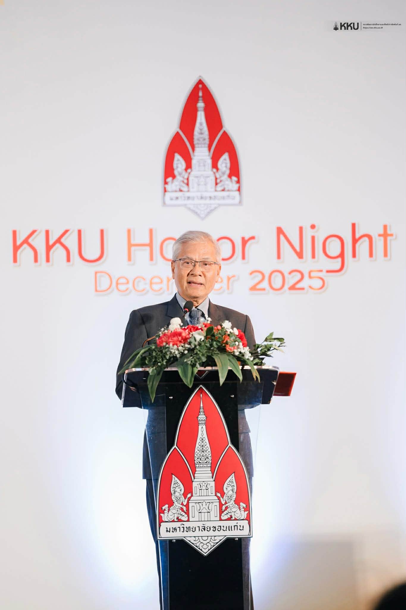 เมื่อวันที่ 18 ธันวาคม 2568 เวลา 18.00 น. ณ ห้องออคิดบอลรูม ชั้น 2 โรงแรมพูลแมน ขอนแก่น ราชาออคิด มหาวิทยาลัยขอนแก่น ได้จัดงานแสดงความยินดีอันทรงเกียรติ “KKU Honor Night 2025” เพื่อประกาศเกียรติคุณและมอบรางวัลแก่ผู้ได้รับพระราชทานปริญญาดุษฎีบัณฑิตกิตติมศักดิ์ รวมถึงผู้ได้รับรางวัลพระธาตุพนมทองคำ รางวัลศรีมอดินแดง รางวัลศรีกาลพฤกษ์ และรางวัลกาลพฤกษ์ทองคำ ประจำปีพุทธศักราช 2568
