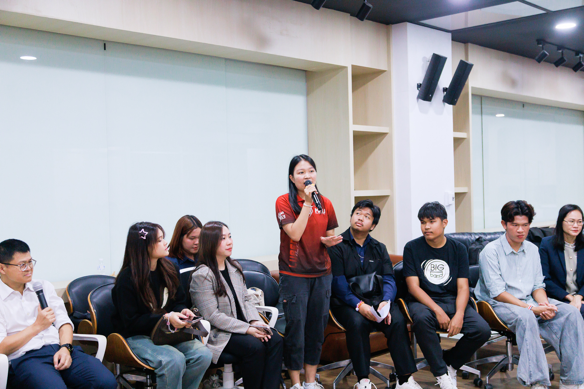 ในการจัดกิจกรรมครั้งนี้ได้รับเกียรติจาก ผู้ช่วยศาสตราจารย์ ดร.อนุชา โสมาบุตร ผู้ช่วยอธิการบดีฝ่ายการศึกษา และ ผู้ช่วยศาสตราจารย์ ดร.ศักดิ์สุริยา ไตรยราช รองคณบดีฝ่ายบริหารทรัพยากรบุคคลและนวัตกรรมดิจิทัล วิทยาลัยนานาชาติ เป็นวิทยากรดำเนินกิจกรรมในหัวข้อ ISKKU Grill & Talk (Phase2) "เสียงของคุณ... คืออนาคตของคณะของเรา"