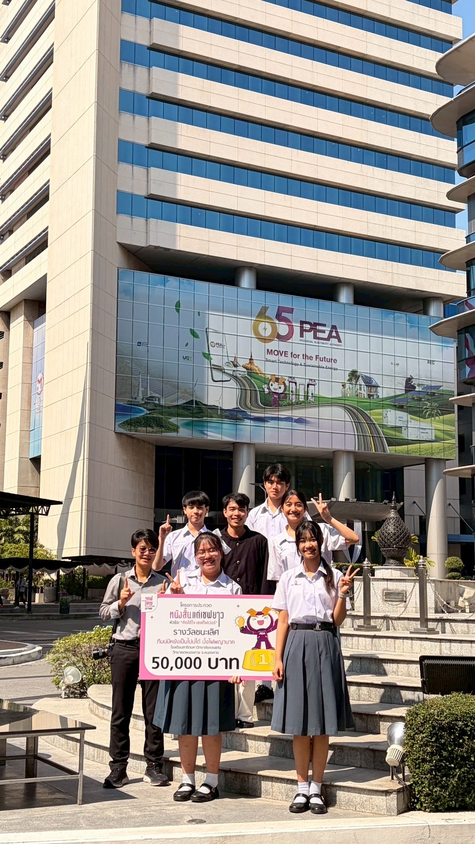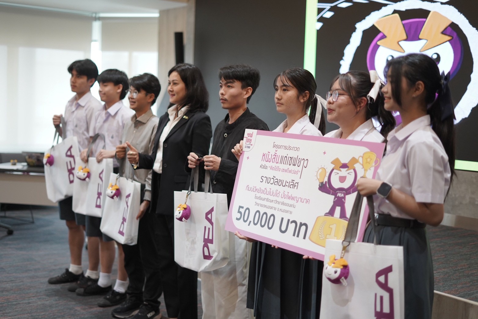 วันที่ 12 มกราคม 2569 ณ ณ ห้องสุโขทัย อาคาร 1 ชั้น 7 การไฟฟ้าส่วนภูมิภาค (สำนักงานใหญ่) จังหวัดกรุงเทพมหานคร อาจารย์ภัครพงค์ ไพรคำนาม และ อาจารย์ธัญสิริ ทองคำปัน พร้อมนักเรียน โรงเรียนสาธิตมหาวิทยาลัยขอนแก่น วิทยาเขตหนองคาย เข้ารับรางวัลชนะเลิศ ในชื่อผลงาน "บั้งไฟผี PEA" การประกวดหนังสั้นแต่เซฟยาว ในหัวข้อ “คิดได้ไง เซฟไฟเว่อร์” ซึ่งเป็น 1 ในผลงานที่ส่งประกวดทั้งหมด 245 เรื่องจากทั่วประเทศ จัดโดย เซฟไทย โครงการภายใต้การดูแลและควบคุมของการไฟฟ้าส่วนภูมิภาค (PEA) เพื่อสร้างการรับรู้ด้านการใช้พลังงานอย่างสร้างสรรค์ผ่านมุมมองคนรุ่นใหม่ โดยได้รับเกียรติจาก คุณนวลอนงค์ คำใสแสง ผู้อำนวยการฝ่ายบริหารความยั่งยืนและสื่อสารองค์กร เป็นผู้แทนในการมอบรางวัล