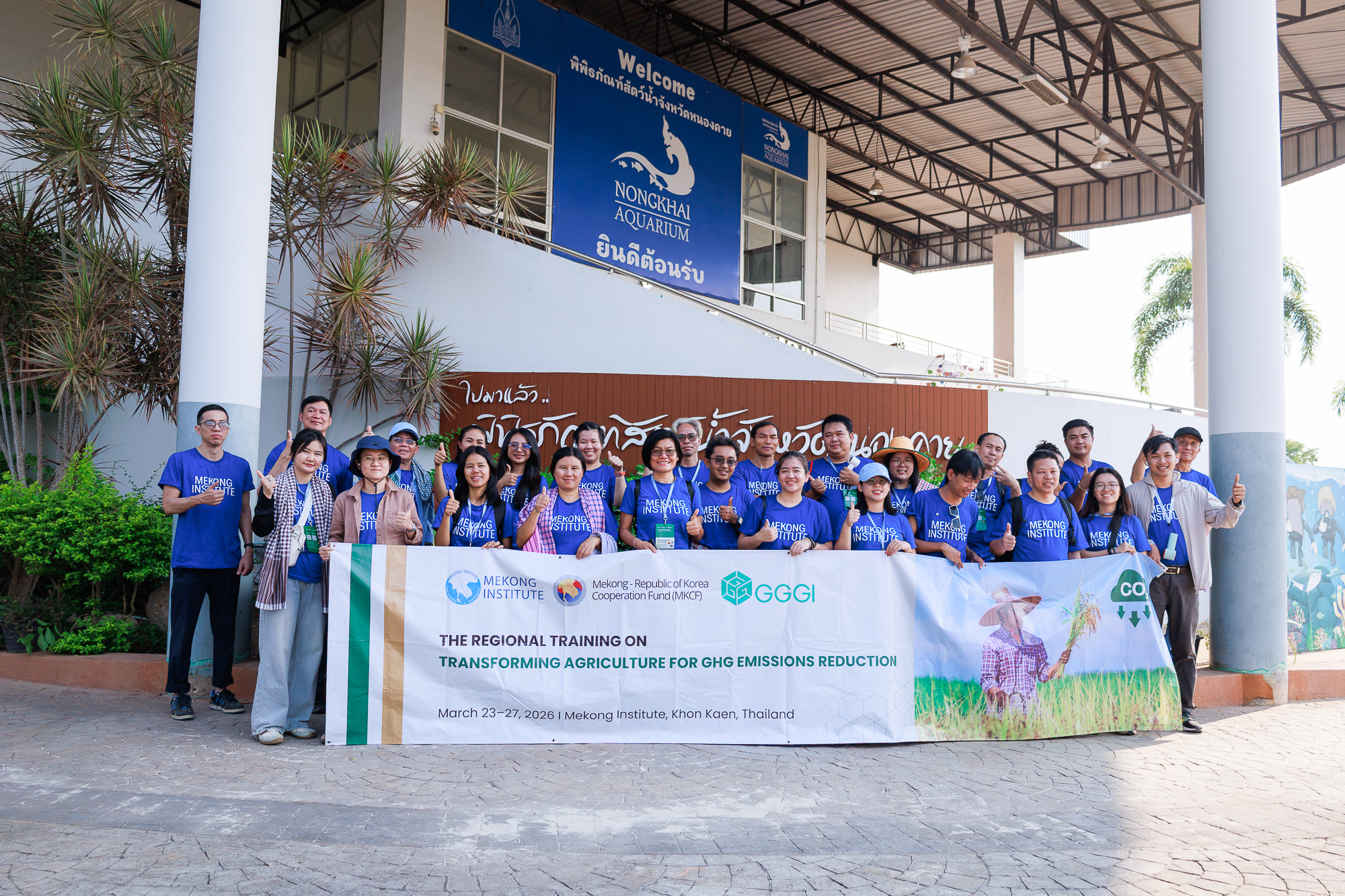 เมื่อวันที่ 26 มีนาคม 2569 คณะสหวิทยาการ มหาวิทยาลัยขอนแก่น ได้กำหนดจัด โครงการอบรมเชิงปฏิบัติการด้านนวัตกรรมการประเมินคาร์บอนฟุตพริ้นท์ ของการผลิตสับปะรดสำหรับการติดฉลากคาร์บอน เพื่อสนับสนุนเศรษฐกิจคาร์บอนต่ำในการบรรเทาภาวะโลกร้อน ณ วิสาหกิจชุมชนแปลงใหญ่สับปะรด บ้านจำปาทอง ตำบลหนองปลาปาก อำเภอศรีเชียงใหม่ จังหวัดหนองคาย โดยมี ผู้ช่วยศาสตราจารย์ ดร.สุนทรี บูชิตชน คณบดีคณะสหวิทยาการ , รองศาสตราจารย์ ดร.วัลลภา วงศ์ศีลธรรม รองคณบดีคณะสหวิทยาการ , นายจรัล กลางประดิษฐ์ นายอำเภอศรีเชียงใหม่ , นายอนันต์ ศรีหงษ์ เกษตรอำเภอศรีเชียงใหม่ และนางสาวสรัญญา ตุลาพันธ์ พัฒนาการอำเภอศรีเชียงใหม่ ให้การต้อนรับ Ms. Guohua Liu ผู้อำนวยการฝ่ายพลังงานและสิ่งแวดล้อมที่ยั่งยืน สถาบันความร่วมมือเพื่อพัฒนาเศรษฐกิจลุ่มน้ำโขง และนักวิจัยเครือข่ายในอนุภูมิภาคลุ่มแม่น้ำโขง (GMS) จากสถาบันความร่วมมือเพื่อพัฒนาเศรษฐกิจลุ่มน้ำโขง (Mekong Institute: MI) รวม 5 ประเทศ โครงการดังกล่าวเป็นการบูรณาการความรู้ด้านนวัตกรรมการประเมินคาร์บอนฟุตพริ้นท์ผลิตภัณฑ์เข้ากับบริบทของพื้นที่ โดยเฉพาะการผลิตสับปะรด GI ในจังหวัดหนองคาย เพื่อยกระดับคุณภาพชีวิตชุมชนและส่งเสริมเศรษฐกิจคาร์บอนต่ำ