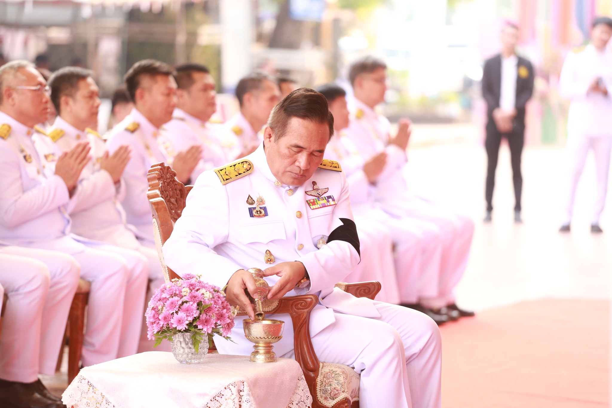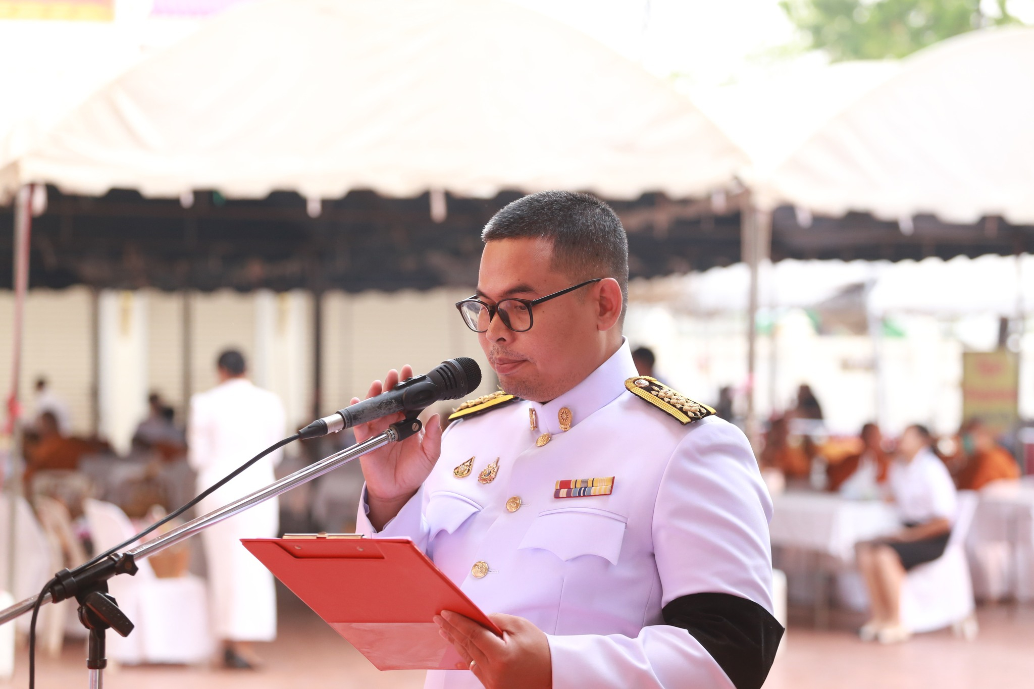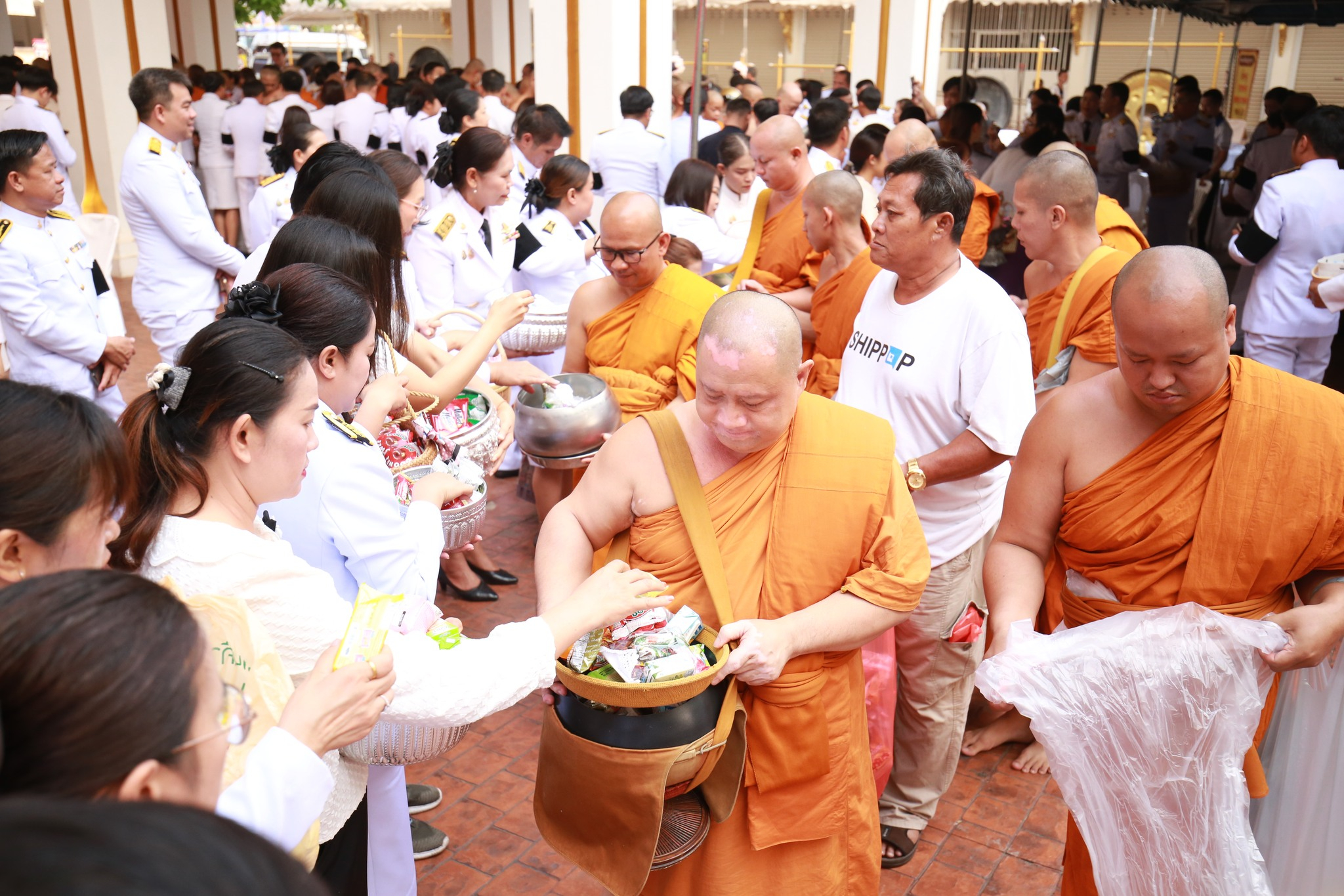 ภายในพิธีได้รับเกียรติจาก นายศรัณย์ศักดิ์ ศรีเครือเนตร ผู้ว่าราชการจังหวัดหนองคาย เป็นประธานในพิธี นำหัวหน้าส่วนราชการ หน่วยงานภาครัฐ ภาคเอกชน และประชาชนทุกหมู่เหล่า ร่วมกันตักบาตรพระสงฆ์และสามเณร เพื่อแสดงออกถึงความจงรักภักดีและน้อมรำลึกในพระมหากรุณาธิคุณอันหาที่สุดมิได้ ที่ทรงมีต่อปวงชนชาวไทย โดยเฉพาะด้านการศึกษาและการพัฒนาคุณภาพชีวิตในพื้นที่ห่างไกล
