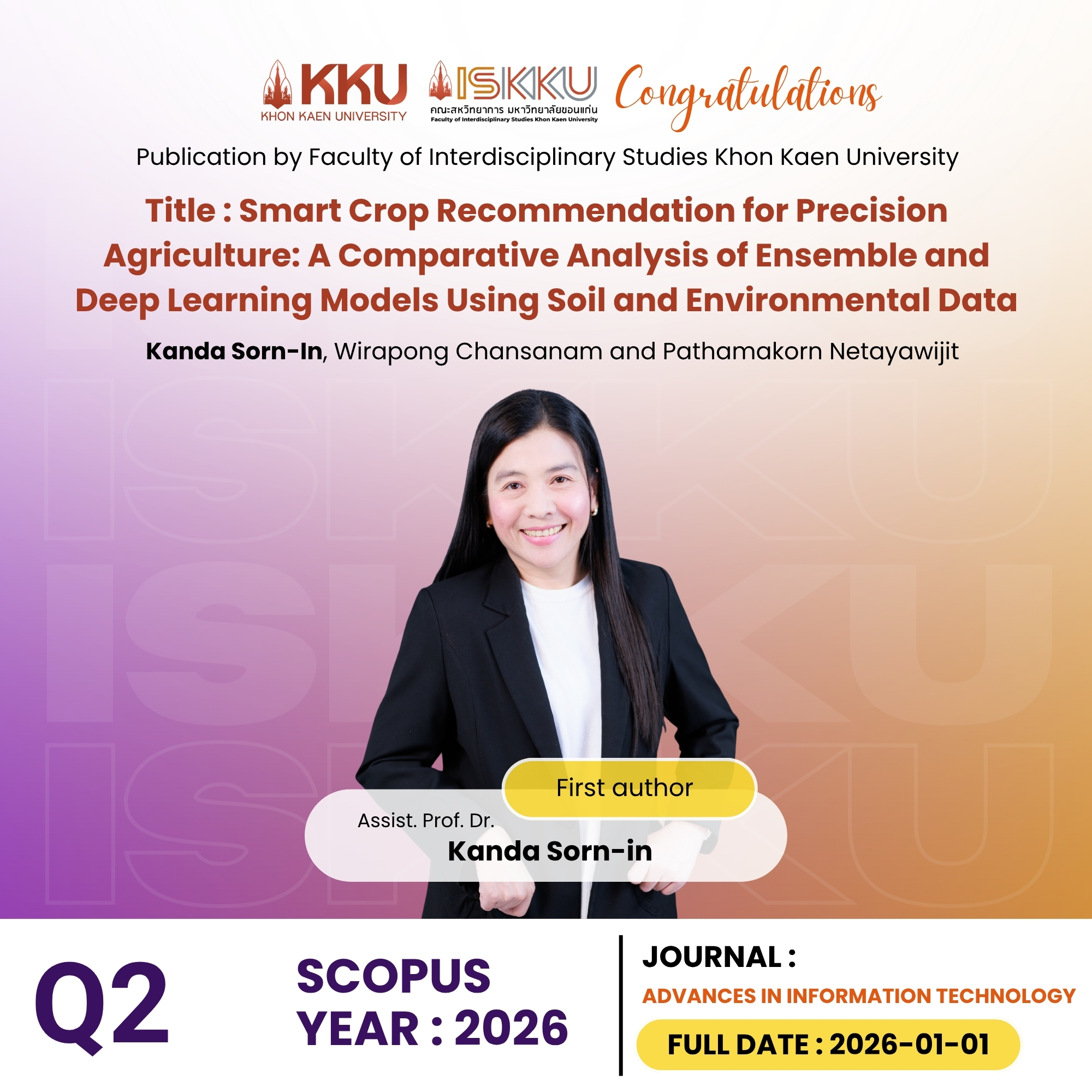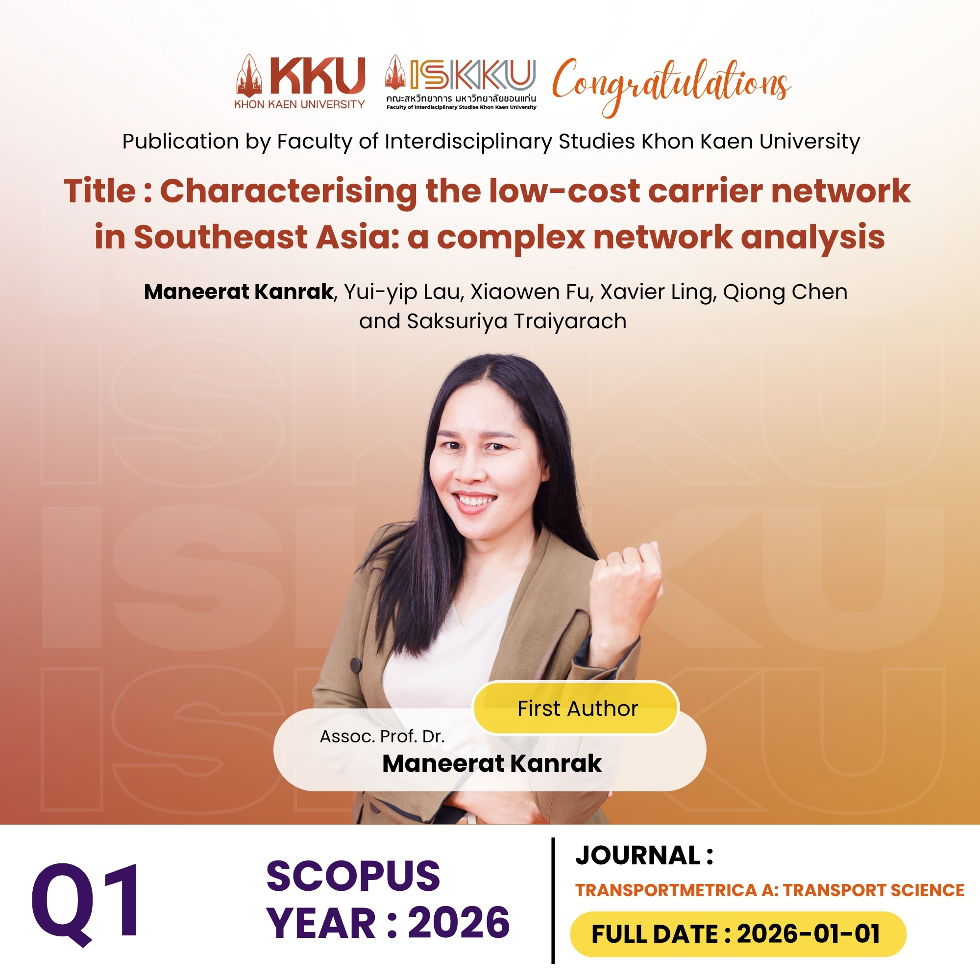 คณะสหวิทยาการ มหาวิทยาลัยขอนแก่น ขอแสดงความยินดีกับคณาจารย์ในโอกาสที่ได้รับการตีพิมพ์วารสารวิชาการระดับนานาชาติ