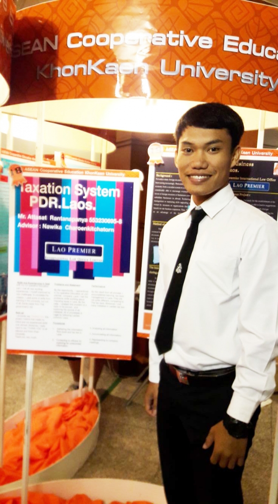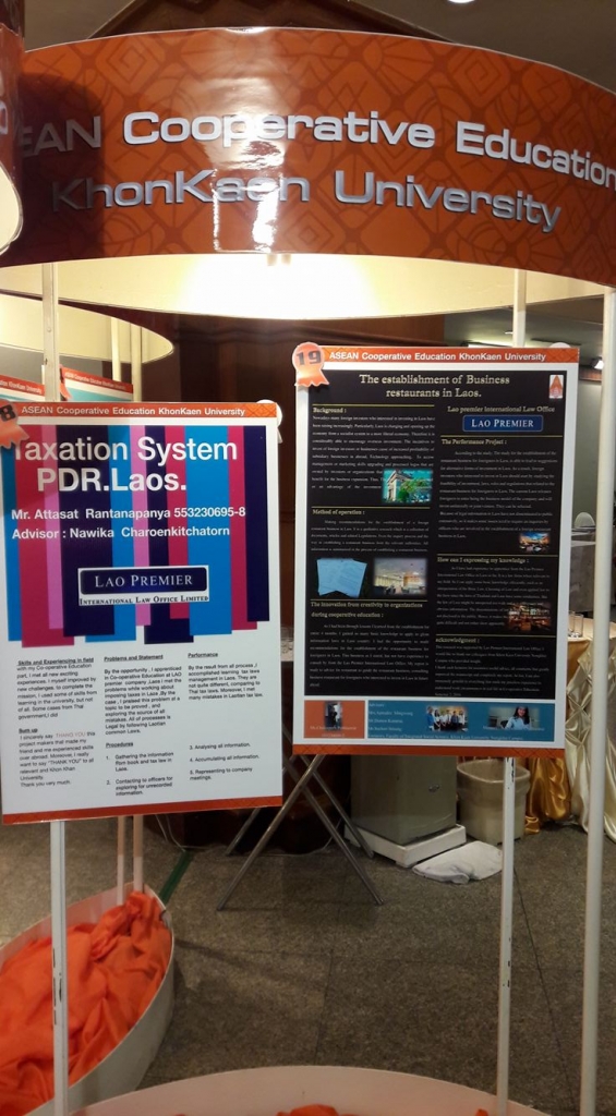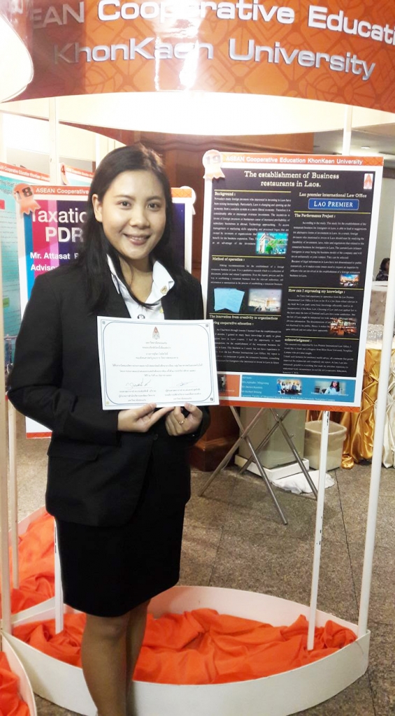 โดย นายอรรถศาสตร์ รัตนปัญญา และ นางสาวชุลีพร โพธิสวัสดิ์ คณะสังคมศาสตร์บูรณาการ สาขานิติศาสตร์ นักศึกษาของวิทยาเขตหนองคาย จำนวน 2 คน ที่ได้เดินทางไปฝึกสหกิจศึกษาใน 1 ประเทศในกลุ่มประเทศสมาชิกอาเซียน คือ สาธารณรัฐประชาธิปไตยประชาชนลาว ระยะเวลาทั้งสิ้นกว่า 4 เดือน ในหน่วยงาน Lao Premier International Law Office นักศึกษาต่างล้วนได้รับการฝึกประสบการณ์ทำงานจริงจากหน่วยงานต้นสังกัดในด้านต่างๆที่เกี่ยวข้อง ทั้งในด้านการวางแผนงานและนโยบาย การบริหารและพัฒนาทรัพยากรมนุษย์ การบริหารองค์การ ฯลฯ และภายหลังการฝึกสหกิจอาเซียน ต้องมีการทำรายงานศึกษาวิจัยเบื้องต้นเกี่ยวกับองค์กรและภาระงานที่ได้ไปฝึกประสบการณ์เพื่อนำกลับมานำเสนอและวัดผลการแลกเปลี่ยนประสบการณ์ในภายหลัง