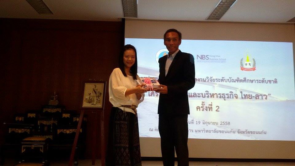 คณะบริหารธุรกิจ ร่วมกับ คณะวิทยาการจัดการ มหาวิทยาลัยขอนแก่นและคณะเศรษฐศาสตร์และการจัดการธุรกิจ มหาวิทยาลัยแห่งชาติ สปป.ลาว ร่วมเป็นเจ้าภาพจัดการประชุมวิชการเสนอผลงานวิจัยระดับบัณฑิตศึกษาระดับชาติ เมื่อวันที่ 19 มิถุนายน 2558 ณ ห้องประชุมคณะวิทยาการจัดการ มหาวิทยาลัยขอนแก่น ซึ่งมี รศ.ดร.กัลปพฤกษ์ ผิวทองงาม คณบดีคณะวิทยาการจัดการ มหาวิทยาลัยขอนแก่น เป็นประธานเปิดงานและมีบรรยายพิเศษจาก ผศ.ดร.กริช แรงสูงเนิน คณบดีคณะบริหารธุรกิจ มหาวิทยาลัยขอนแก่น บรรยายเรื่อง “การวิจัยกับบัณฑิตยุคใหม่” โดยการจัดการประชุมวิชการเสนอผลงานวิจัยระดับบัณฑิตศึกษาในครั้งนี้ จัดขึ้นเพื่อเป็นการเผยแพร่ผลงานวิจัยจากวิทยานิพนธ์ หรือการศึกษาอิสระ ของนักศึกษาระดับบัณฑิตศึกษา จำนวน 30 คน จาก 3 คณะคือ คณะบริหารธุรกิจ คณะวิทยาการจัดการ มหาวิทยาลัยขอนแก่นและคณะเศรษฐศาสตร์และการจัดการธุรกิจ มหาวิทยาลัยแห่งชาติ สปป.ลาว โดยคณะบริหารธุรกิจ มีนักศึกษาระดับบัณฑิตศึกษา นำเสนอผลงานวิจัยจำนวน 10 คน ทั้งนี้การประชุมวิชาการเสนอผลงานวิจัยในครั้งนี้ ถือเป็นเวทีที่ทำให้นักศึกษาได้นำเสนอผลงานวิจัยไปสู่สาธารณชน รวมถึงเป็นการเปิดโอกาสให้มีการแลกเปลี่ยนผลงานและข้อมูลการวิจัยระหว่างนักศึกษา คณาจารย์สาขาวิชาต่าง ๆ ระหว่างมหาวิทยาลัยและองค์กรเครือข่ายต่างๆ เพื่อพัฒนาคุณภาพและมาตรฐานวิทยานิพนธ์และการศึกษาอิสระ สู่การวิจัยที่สามารถนำไปใช้ประโยชน์ต่อชุมชนสังคมและประเทศต่อไป