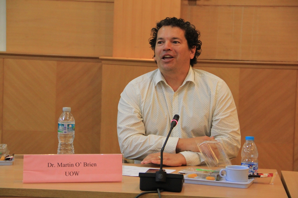 ผศ.ดร.กริช แรงสูงเนิน คณบดีคณะบริหารธุรกิจ ได้กล่าวต้อนรับอาจารย์ Dr.Martin O’Brien Mr. Alexandra Woolner และนักศึกษาสาขาเศรษฐศาสตร์มหาวิทยาลัยวูลองกอง (University of Wollongong) ประเทศออสเตรเลีย