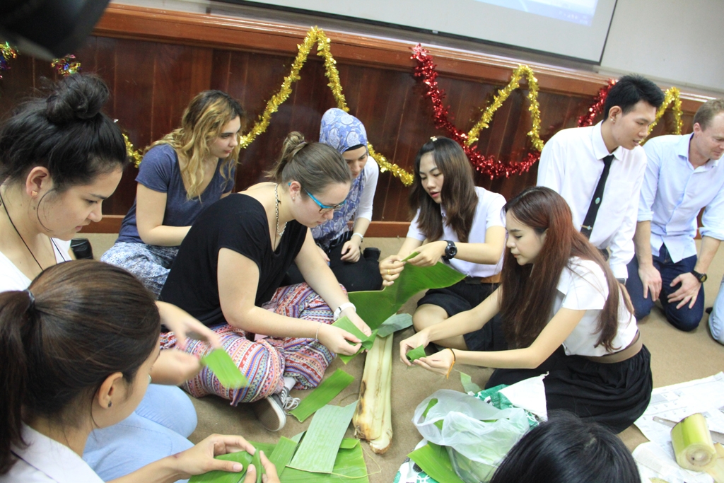 เรียนรู้ประเพณีลอยกระทง มวยไทยโดยมีคณะศิลปศาสตร์ จัดกิจกรรมด้านวัฒนธรรมและมีนักศึกษาจากคณะบริหารธุรกิจ