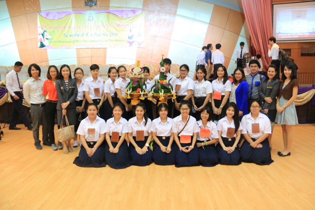 นักศึกษาวิทยาเขตหนองคาย น้อมรำลึกในพระคุณครู จัดพิธีไหว้ครูแสดงความกตัญญูกตเวทิตา ต่อครู อาจารย์ ผู้มีพระคุณ ที่ได้อบรมสั่งสอนและประสิทธิ์ประสาทวิทยาการความรู้แก่ศิษย์ โดยมีนักศึกษาวิทยาเขตหนองคายเข้าร่วมพิธีกว่า 700 คน ในวันที่ 3 กันยายน 2558 เวลา 09.00 น. ณ ห้องประชุม 2217 อาคารเรียนรวมและปฏิบัติการ โดยมี ผู้ช่วยศาสตราจารย์ ดร.เกียรติ แสงอรุณ รองอธิการบดีวิทยาเขตหนองคาย เป็นประธานในพิธีและให้โอวาท พร้อมด้วย ผู้บริหารและคณาจารย์ จากคณะวิทยาศาสตร์ประยุกต์และวิศวกรรมศาสตร์ คณะบริหารธุรกิจ คณะสังคมศาสตร์บูรณาการ และคณะศิลปศาสตร์
