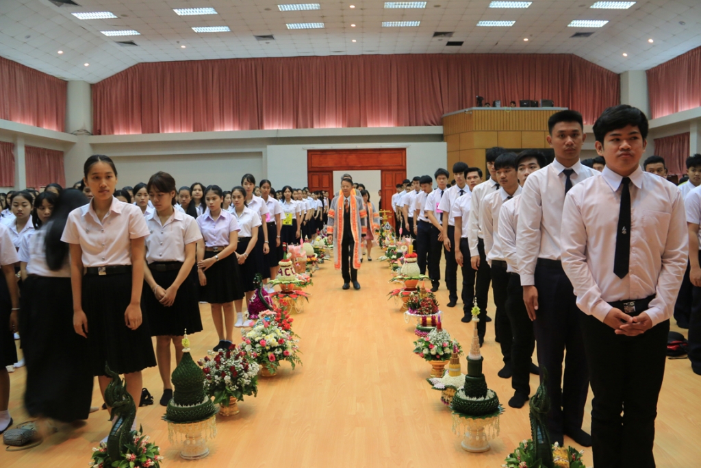 ผู้ช่วยศาสตราจารย์ ดร.เกียรติ แสงอรุณ รองอธิการบดีวิทยาเขตหนองคาย ได้ให้โอวาทแก่นักศึกษาว่า “ในนามของ คณาจารย์ทุกคน รู้สึกยินดี ภูมิใจ และทราบซึ้งใจ ที่นักศึกษา ได้รักษาขนบธรรมเนียมประเพณีอันดีงามของไทยไว้ ไม่ว่าเราจะอยู่ในระดับไหน ชั้นไหน ครู และลูกศิษย์ จะมีความผูกพันกันเสมอ ซึ่งครูอาจารย์ไม่ใช่แค่ผู้ที่สอนอยู่ในชั้นเรียน แต่ยังรวมถึง บุคลากร เจ้าหน้าที่ ที่คอยช่วยเหลือ อำนวยความสะดวกแก่พวกเราด้วย และวันนี้ก็ได้เห็นนักศึกษาที่มีความตั้งใจมาด้วยใจกันทุกคน และโอกาสนี้ก็ขอชื่นชมยินดีกับนักศึกษาที่เรียนดีเด่นและได้รับทุน ขอให้นักศึกษาได้รักษาคุณความดีนี้เอาไว้ การเคารพบูชาจะมีความหมายมากขึ้นเมื่อเราได้เน้นเรื่องการปฏิบัติ บูชาต่อผู้ควรบูชา คือ พ่อแม่ ครูและรู้จักหน้าที่ กระทำหน้าที่ของตนเองให้ดีที่สุดคือตั้งใจเรียน ซึ่งทุกคนก็สามารถทำได้”