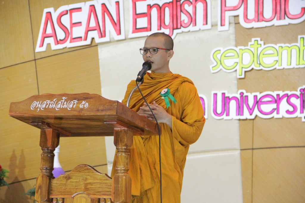 ซึ่งในพิธีเปิดได้รับเกียรติจาก นายอโณทัย ธรรมกุล รองผู้ว่าราชการจังหวัดหนองคาย ให้เกียรติเป็นประธานในพิธีกล่าวเปิดงานและให้โอวาท รศ.ดร.รักชนก แสงภักดีจิตร รักษาราชการแทนคณบดีคณะศิลปศาสตร์กล่าวต้อนรับผู้เข้าร่วมงาน และนายวัฒนา มุลเมืองแสน ผู้แทนจากมหาวิทยาลัยมหาจุฬาลงกรราชวิทยาลัย กล่าวรายงานวัตถุประสงค์การจัดงาน ทั้งนี้ การจัดการแข่งขันกล่าวสุนทรพจน์ภาษาอังกฤษในที่ชุมชนในหัวข้อที่เกี่ยวกับอาเซียน ปี 2558 มีผู้เข้าร่วมแข่งขันในระดับมัธยมศึกษา ในเขตภาคอีสาน จำนวน 14 โรงเรียน จากจังหวัดศรีสะเกษ หนองบัวลำภู ชัยภูมิ เลย หนองคาย ร้อยเอ็ด สุรินทร์ บึงกาฬและอุดรธานี และผู้เข้าร่วมแข่งขัน ในระดับอุดมศึกษา ร่วมแข่งขัน 9 สถาบัน จากจังหวัดขอนแก่น หนองคาย บุรีรัมย์ นครพนมและอุดรธานี โดยผู้ที่ได้รับรางวัล ชนะเลิศการแข่งขันระดับมัธยมศึกษา ได้แก่....นางสาวธัญรัตน์ วงศ์พิทักษ์ จากโรงเรียน.ศรีษะเกษวิทยาลัย รับประกาศนียบัตรและเงินรางวัล 5,000 บาท และระดับ อุดมศึกษา ได้แก่ นายกัณวีธ์ บุญชื่นชม จากคณะแพทยศาสตร์ มหาวิทยาลัยขอนแก่น ได้รับโล่รางวัล ใบประกาศนียบัตรและเงินรางวัล 5,000 บาท