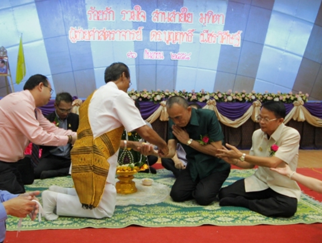 ได้มาร่วมอวยพรบายศรีสู่ขวัญ จัดการแสดงรำอวยพร และมอบของที่ระลึกให้กับ ผศ.บุญฤทธิ์