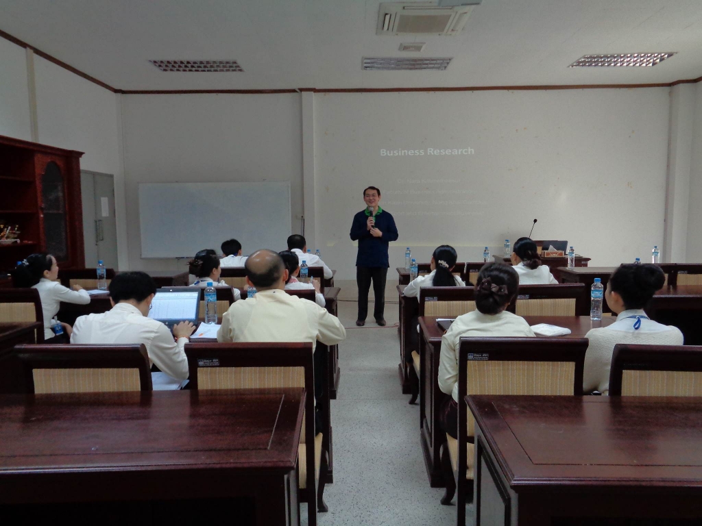 ดร.นารา กิตติเมธีกุล อาจารย์ประจำคณะบริหารธุรกิจ ได้รับเชิญจากคณะเศรษฐศาสตร์และบริหารธุรกิจ มหาวิทยาลัยแห่งชาติลาว เป็นวิทยากรบรรยายการออกแบบงานวิจัยทางธุรกิจ ถ่ายทอดประสบการณ์ในการทำวิจัย การตีพิมพ์ และการเก็บข้อมูลภาคสนาม ให้กับคณาจารย์สถาบันการธนาคาร ภายใต้การกำกับของธนาคารชาติลาว ระหว่างวันที่ 18-19 มกราคม 2559