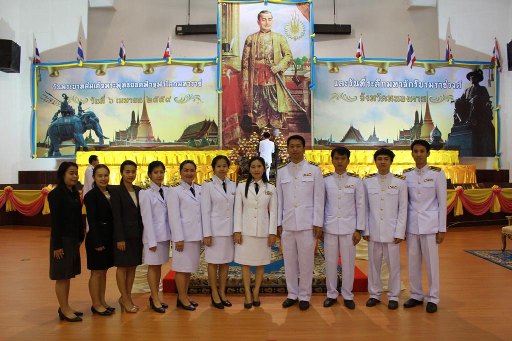ในวันที่ 6 เมษายน 2559 นางดารารัตน์ อุ่นคำ ผู้อำนวยการสำนักงานวิทยาเขตหนองคาย พร้อมด้วยเจ้าหน้าที่งานอำนวยการ สำนักงานวิทยาเขตหนองคาย เข้าร่วมพิธีถวายพานพุ่มดอกไม้สด วันพระบาทสมเด็จพระพุทธยอดฟ้าจุฬาโลกมหาราช และวันที่ระลึกมหาจักรีบรมราชวงค์ ณ หอประชุมประจักษ์ศิลปาคม ศูนย์ราชการจังหวัดหนองคาย โดยมีนายสุชาติ นพวรรณ ผู้ว่าราชการจังหวัดหนองคาย เป็นประธานในพิธี นำข้าราชการ ทหาร ตำรวจ พ่อค้า ประชาชน และนักเรียนนักศึกษา ในจังหวัดหนองคายทุกหมู่เหล่าทำพิธีวางพานพุ่มดอกไม้สด เพื่อเป็นการน้อมรำลึกถึงพระเกียรติคุณและแสดงความจงรักภักดี ต่อองค์พระบาทสมเด็จพระพุทธยอดฟ้าจุฬาโลกมหาราช