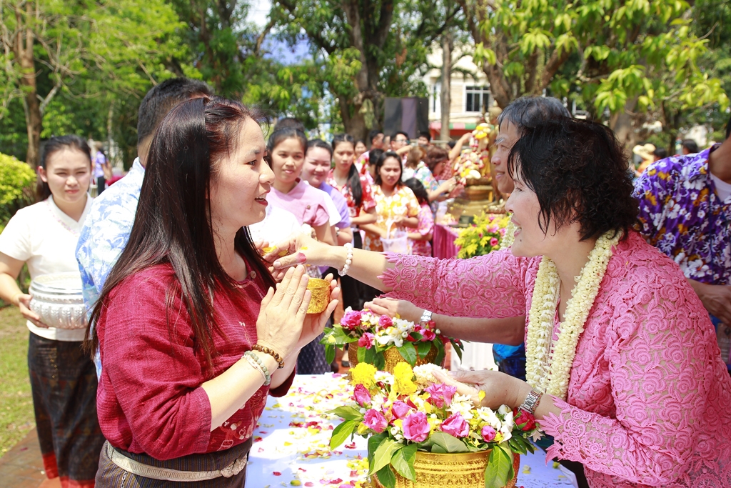 สืบสานประเพณีสงกรานต์ จังหวัดหนองคาย เข้ารดน้ำขอพรพ่อเมืองหนองคาย