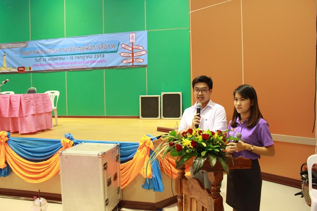 เมื่อวันที่ 13 พฤษภาคม 2559 เพื่อเสริมสร้างทักษะการฟัง การพูด การอ่านและการเขียนภาษาอังกฤษการสร้างความตระหนักถึงความสำคัญของภาษาอังกฤษและทัศนคติที่ดีในการใช้ภาษา ตลอดจนสร้างพื้นฐานที่ดีในกระบวนการเรียนรู้ภาษาอันจะเป็นผลดีต่อการเรียนรู้ภาษาอื่นๆในกลุ่มประเทศอาเซียนผ่านการเรียนรู้และฝึกฝนจากกิจกรรมที่จัดขึ้นเป็นระยะเวลา 10 วัน ในทุกวันศุกร์ เวลา 13.00น. – 16.00น. ระหว่างวันที่ 13 พฤษภาคม– 15 กรกฎาคม 2559 ณ ห้องประชุม เทศบาลเมืองหนองคาย รวมระยะเวลาตามหลักสูตร 30 ชั่วโมง โดยมีผู้เข้าร่วมโครงการในครั้งนี้กว่า 176 คน ซึ่งในพิธีเปิดรองศาสตราจารย์ ดร.รักชนก แสงภักดีจิต คณบดีคณะศิลปศาสตร์ กล่าวรายงานการจัดโครงการ และได้รับเกียรติจากนายกำภล เมืองโคตร นายกเทศมนตรีจังหวัดหนองคาย ให้เกียรติเป็นประธานกล่าวเปิดโครงการในครั้งนี้