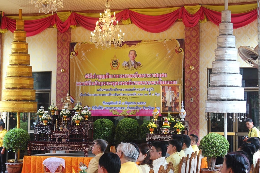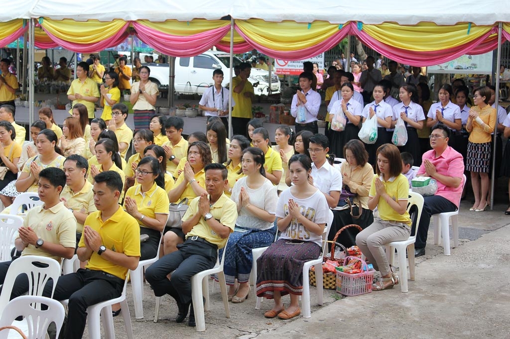 วันพฤหัสบดีที่ ๙ มิถุนายน ๒๕๕๙ เวลา ๐๖.๐๐ น. นางดารารัตน์ อุ่นคำ ผู้อำนวยการสำนักงานวิทยาเขตหนองคาย ได้ร่วมพิธีทำบุญตักบาตร ถวายเป็นพระราชกุศลและพิธีเจริญพระพุทธมนต์ ถวายพระพรชัยมงคลเฉลิมพระเกียรติพระเจ้าอยู่หัว เนื่องในโอกาสมหามงคลเสด็จเถลิงถวัลยราชสมบัติครบ ๗๐ ปี โดยมีนายสุชาติ นพวรรณ ผู้ว่าราชการจังหวัดหนองคาย เป็นประธานในครั้งนี้ พร้อมทั้งข้าราชการ พ่อค้า ประชาชน นักเรียน นักศึกษา ณ วัดโพธิ์ชัย (พระอารามหลวง) จ.หนองคาย