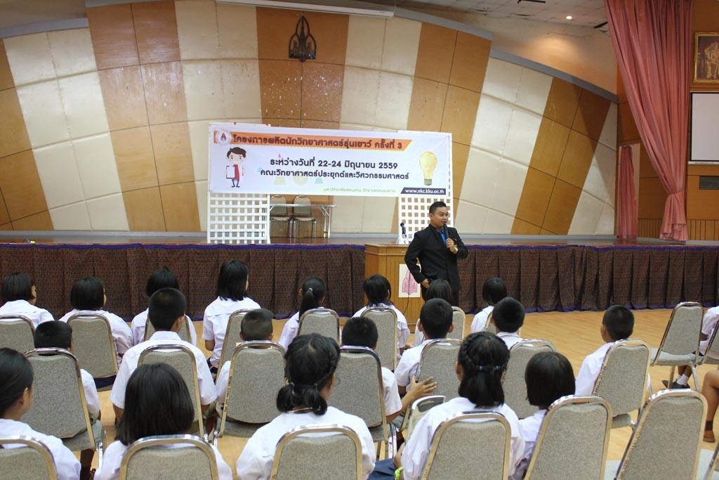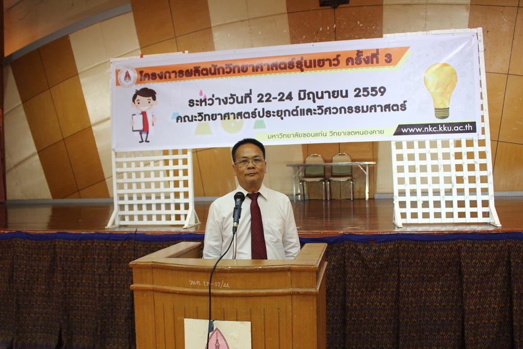 วันที่ 22 มิถุนายน 2559 คณะวิทยศาสตร์ประยุกต์และวิศวกรรมศาสตร์ จัดโครงการผลิตนักวิทยาศาสตร์รุ่นเยาว์ ครั้งที่ 3 เพื่อเสริมสร้างความรู้พื้นฐานทางวิทยาศาสตร์ เน้นให้เกิดการแสดงออกซึ่งความคิดริเริ่มสร้างสรรค์ การคิดแก้ปัญหาอย่างเป็นระบบ ตลอดจนสร้างความประทับใจในด้านวิทยาศาสตร์ โดยมีนักเรียนที่เข้าร่วมโครงการฯในครั้งนี้ เป็นนักเรียนระดับชั้นประถมศึกษา จากโรงเรียน ซึ่งอยู่ในเขตพื้นที่ การปกครองส่วนท้องถิ่นเดียวกันกับ วิทยาเขตหนองคาย และมีการจัดอบรม ตั้งแต่วันที่ 22 – 24 มิถุนายน 2559 โดยมีนายภูวฎน กรพันธุ์ หัวหน้าโครงการ เป็นผู้กล่าวรายงานวัตถุประสงค์และมี รองศาสตราจารย์ ดร.วิรัช จิ๋วแหยม คณบดีคณะวิทยาศาสตร์ประยุกต์และวิศวกรรมศาสตร์เป็นประธานเปิดงาน ทั้งนี้โครงการฯได้มีการจัดกิจกรรมสันทนาการ การอบรมความรู้ด้านวิทยาศาสตร์พื้นฐาน และฝึกปฏิบัติการทางวิทยาศาสตร์ ให้กับนักวิทยาศาสตร์รุ่นเยาว์ จำนวน 50 คน