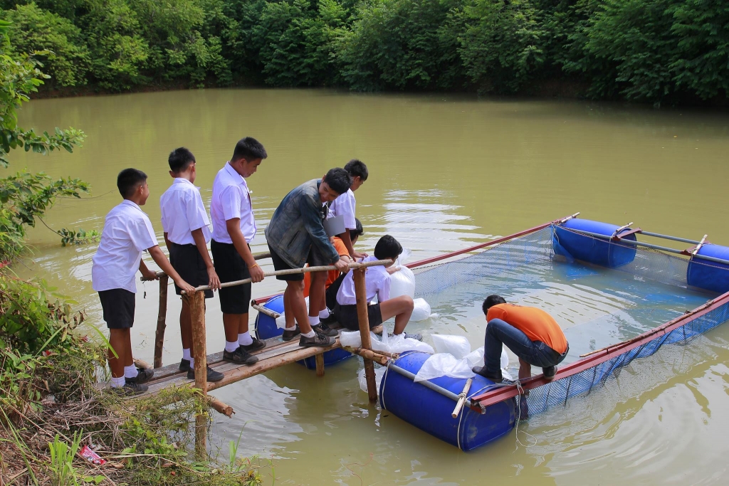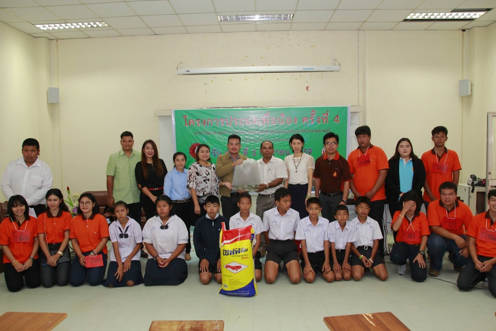 ทั้งนี้ ผู้ช่วยศาสตราจารย์ ดร.ณัฎฐา นิธิกุลวรวงศ์ รองคณบดีคณะวิทยาศาสตร์ประยุกต์และวิศวกรรมศาสตร์ ได้ให้เกียรติเป็นประธานมอบพันธุ์ปลานิล จำนวน 500 ตัว จากฟาร์มของหลักสูตรวิทยาศาสตร์การประมง อาหารปลา 15 กระสอบ และกระชังปลา ขนาด 3x4 เมตร จำนวน 1 กระชัง ให้กับทางโรงเรียน โดยมี นายเจริญ สอนคำหาญ ผู้อำนวยการโรงเรียนธนากรสงเคราะห์ นำทีมคณะครูและนักเรียนรับมอบ