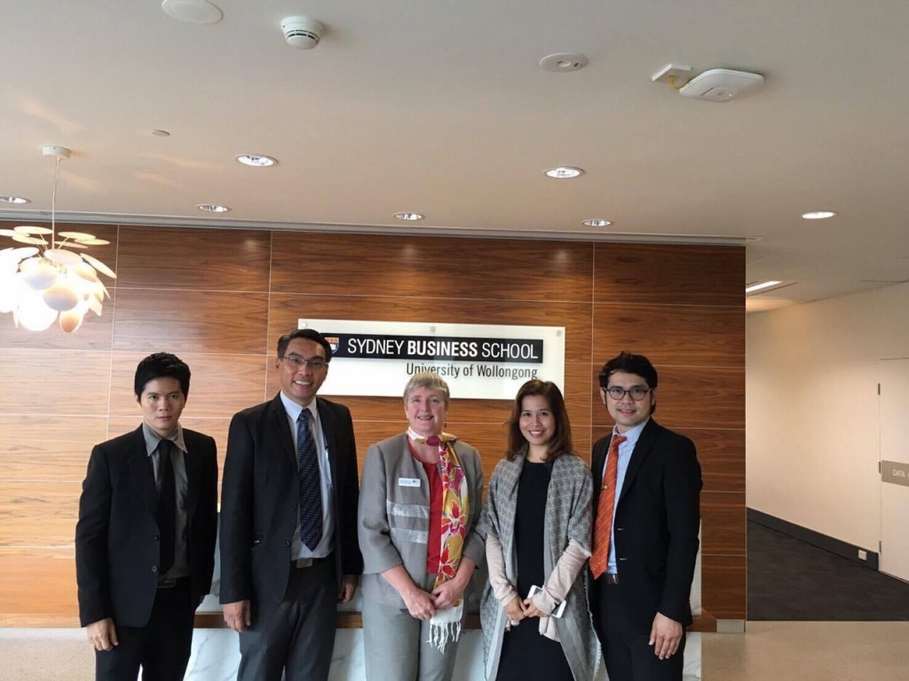 ผศ.ดร.กริช แรงสูงเนิน คณบดี ดร.จตุราพร สีหาบุตร รองคณบดี ดร.ธนชาติ เราประเสริฐ ผู้ช่วยคณบดี และ ดร.ธีระวัฒน์ เจริญราษฎร์ ประธานฝ่ายวิจัย คณะบริหารธุรกิจ มหาวิทยาลัยขอนแก่น วิทยาเขตหนองคาย (NBS) ได้เดินทางไปสร้างเครือข่ายความร่วมมือกับสองมหาวิทยาลัย รวมสามสถาบันการศึกษาในประเทศออสเตรเลีย ระหว่างวันที่ 7-9 กันยายน 2559 โดยครั้งนี้คณะบริหารธุรกิจ มข. ได้ลงนามความร่วมมือ (MOU) อย่างเป็นทางการกับ Faculty of Business มหาวิทยาลัย Wollongong University ประเทศออสเตรเลีย ซึ่งมหาวิทยาลัย Wollongong University เป็นมหาวิทยาลัยที่อยู่ในลำดับ 218 ของโลก (QS World University rankings) ในปี 2016 โดยในการลงนามความร่วมมือในครั้งนี้มีวัตถุประสงค์เพื่อสร้างความร่วมมือทางวิชาการกับมหาวิทยาลัยในประเทศออสเตรเลีย โดยภายหลังการลงนามความร่วมมือทางคณะบริหารธุรกิจ มข. ได้มีการประชุมหารือร่วมกันระหว่าง Associate Prof. Gary Noble, Associate Dean (International & Accreditation) และคณะ โดยมีการหารือและมีข้อสรุปในประเด็นต่าง ๆ ดังนี้ (1) การกำหนดให้ Associate Professor Dr. Charles Harvie มาบรรยายพิเศษในหัวข้อการเป็นผู้ประกอบการ และ SMEs ในอาเซียน ให้แก่นักศึกษาระดับ ป.ตรี และ ป.โท คณะบริหารธุรกิจ มข. ในปีการศึกษา 2559 (2) การทำโครงการวิจัยร่วมกันระหว่างอาจารย์ทั้งสองคณะภายใต้หัวข้อวิจัยเรื่องการเป็นผู้ประกอบการ และ SMEs ในอนุภูมิภาคลุ่มแม่น้ำโขง ซึ่งเป็นทุนวิจัยของมหาวิทยาลัย Wollongong University ในปีการศึกษา 2559 (3) โครงการนักศึกษาแลกเปลี่ยนของคณะบริหารธุรกิจ มข. เพื่อเดินทางไปแลกเปลี่ยนทางวิชาการกับ Faculty of Business มหาวิทยาลัย Wollongong University และ Sydney Business School ระหว่างเดือนกรกฎาคม – สิงหาคม พ.ศ.2560 (4) โครงการนักศึกษาแลกเปลี่ยนจาก Faculty of Business มหาวิทยาลัย Wollongong University ปีที่ 3 เพื่อเดินทางมาร่วมทำงานและเพื่อนำเสนอผลงานวิจัยของนักศึกษา ในปี พ.ศ. 2560 กับคณะบริหารธุรกิจ มข. (5) การร่วมแลกเปลี่ยนเรียนรู้เกี่ยวกับการขอรับรองมาตรฐานการศึกษาในระดับโลกจากสถาบันรับรองมาตรฐานการศึกษาทางด้านบริหารธุรกิจ (Association to Advance Collegiate Schools of Business: AACSB) ของ Faculty of Business มหาวิทยาลัย Wollongong University