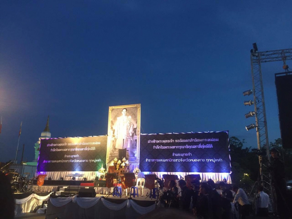 และเมื่อเวลา 16.00 น. นางดารารัตน์ อุ่นคำ ผู้อำนวยการสำนักงานวิทยาเขตหนองคาย พร้อมด้วยบุคลากรวิทยาเขตหนองคาย ได้เข้าร่วมกิจกรรมพลังแห่งความภักดีด้วยการแปรอักษรร่วมกับส่วนราชการและภาคประชาชน ด้วยการแปรอักษรคำว่า “ ๙ (เลขเก้าไทย) พญานาคและหนองคาย” กิจกรรมขับร้องหมู่เพลงพระราชนิพนธ์ กิจกรรมร้องเพลงสรรเสริญพระบารมี โดยหลายภาคส่วนยังพร้อมใจกันจัดกิจกรรมเพื่อถวายเป็นพระราชกุศล อาทิ สำนักงานเหล่ากาชาดจังหวัดหนองคาย เปิดรับบริจาคโลหิต ตลอดทั้งวัน หน่วยงานสังกัดกระทรวงเกษตรและสหกรณ์ จัดนิทรรศการเฉลิมพระเกียรติ ,โรงบุญ จากภาคส่วนต่าง ๆ นำอาหารและเครื่องดื่มมาบริการฟรีแก่ผู้มาร่วมงานเพื่อถวายเป็นพระราชกุศล โดยมีพสกนิกรเข้าร่วมพิธีจำนวนมาก.