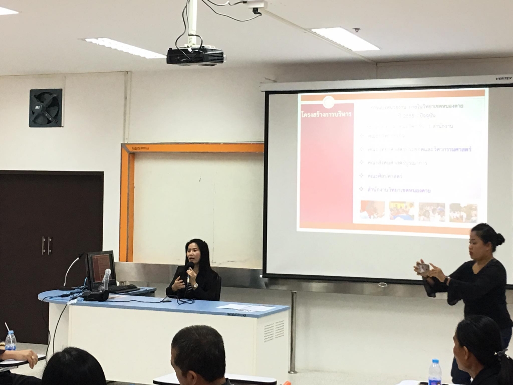 วันที่ 29 มีนาคม 2560 มหาวิทยาลัยขอนแก่น วิทยาเขตหนองคาย นำโดยนางดารารัตน์ อุ่นคำ รักษาการผู้อำนวยการสำนักงานวิทยาเขตหนองคาย พร้อมทั้งหัวหน้างานให้การต้อนรับคณะศึกษาดูงาน จากสำนักส่งเสริมวิชาการและงานทะเบียน มหาวิทยาลัยเทคโนโลยีราชมงคล ตะวันออก นำโดย ดร.จิรายุ อัครวิบูลย์กิจ ผู้อำนวยการสำนักส่งเสริมวิชาการและงานทะเบียน พร้อมคณะ เข้าศึกษาดูงานพร้อมทั้งแลกเปลี่ยนเรียนรู้ด้านการจัดการ ในส่วนงานต่างๆภายในสำนักงาน วิทยาเขตหนองคาย