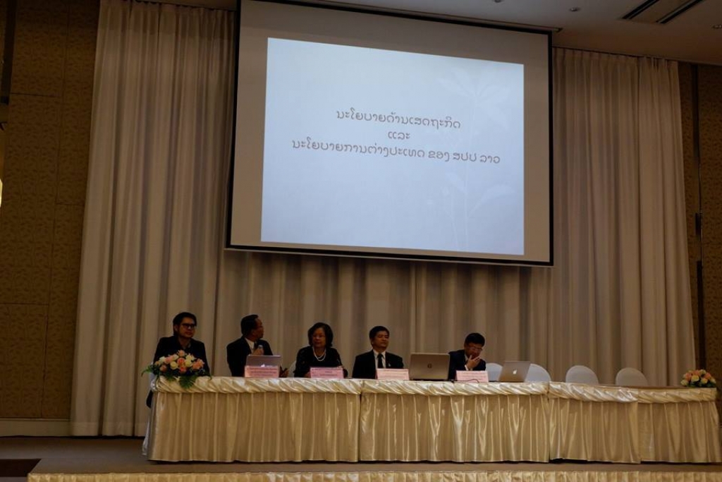 มิติด้านการค้า วิทยาการโดย 1. Assoc.Dr.Phouphet Kyophilavong Vice Dean of Faculty of Economics and Business Management of National University of Lao 2. ดร. นารา กิตติเมธีกุล อาจารย์สาขาการเป็นผู้ประกอบการและนวัตกรรม คณะบริหารธุรกิจ