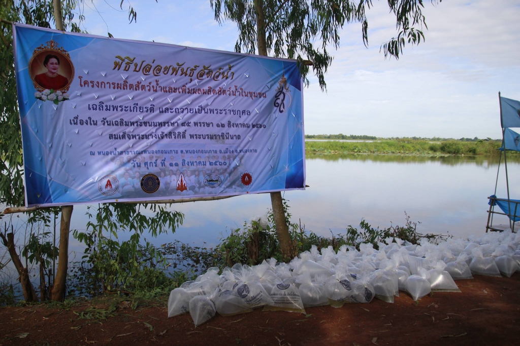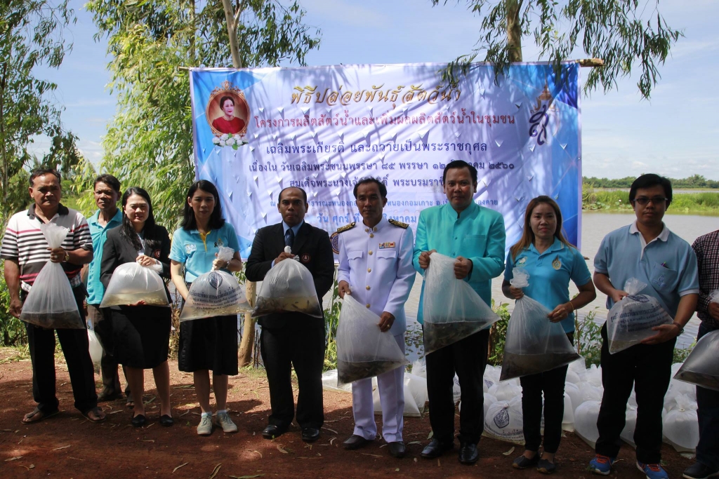 วันที่ 11 สิงหาคม 2560 ณ หนองน้ำสาธารณะหนองกอมเกาะ ตำบลหนองกอมเกาะ อำเภอเมือง จังหวัดหนองคาย สาขาวิทยาศาสตร์การประมง คณะวิทยาศาสตร์ประยุกต์และวิศวกรรมศาสตร์ มหาวิทยาลัยขอนแก่น วิทยาเขตหนองคาย ร่วมกับหน่วยงานในชุมชนหนองกอมเกาะ ได้แก่ องค์การบริหารส่วนตำบลหนองกอมเกาะ สถานศึกษาโรงเรียนในเขตชุมชนหนองกอมเกาะ และศูนย์วิจัยและพัฒนาประมงน้ำจืดหนองคาย จัดพิธีปล่อยพันธุ์สัตว์น้ำ ในโครงการ “ผลิตสัตว์น้ำและเพิ่มผลผลิตสัตว์น้ำในชุมชน” เฉลิมพระเกียรติ และถวายเป็นพระราชกุศล เนื่องในวันเฉลิมพระชนมพรรษา ๘๕ พรรษา ๑๒ สิงหาคม ๒๕๖๐ สมเด็จพระนางเจ้าสิริกิติ์ พระบรมราชินีนาถ ณ บึงหนองกอมเกาะ ต.หนองกอมเกาะ อ.เมือง จ.หนองคาย โดยได้ปล่อยพันธุ์ปลาจากสาขาวิทยาศาสตร์การประมง และได้รับความอนุเคราะห์พันธุ์ปลาจากองค์การบริหารส่วนตำบลหนองกอมเกาะ และศูนย์วิจัยและพัฒนาประมงน้ำจืดหนองคาย เช่น ปลานิล ปลานวลจันทร์ ปลายี่สกเทศ ปลาเล่ง ปลาดุกด้าน รวมทั้งสิ้น 600,000 ตัว เพื่อเป็นแหล่งแพร่ขยายพันธุ์ และผลิตอาหารสัตว์น้ำของชุมชน โดยมี ผู้ช่วยศาสตราจารย์ ฉัตรชัย ปรีชา ประธานหลักสูตรสาขาวิทยาศาสตร์การประมง นายอุดร บุญจันทร์ นายกองค์การบริหารส่วนตำบลหนองกอมเกาะ พร้อมด้วยกำนัน ผู้ใหญ่บ้าน คณะอาจารย์ ครูบุคลากร นักศึกษา นักเรียน และประชาชนในพื้นที่ เข้าร่วมกิจกรรมโดยพร้อมเพรียงกัน