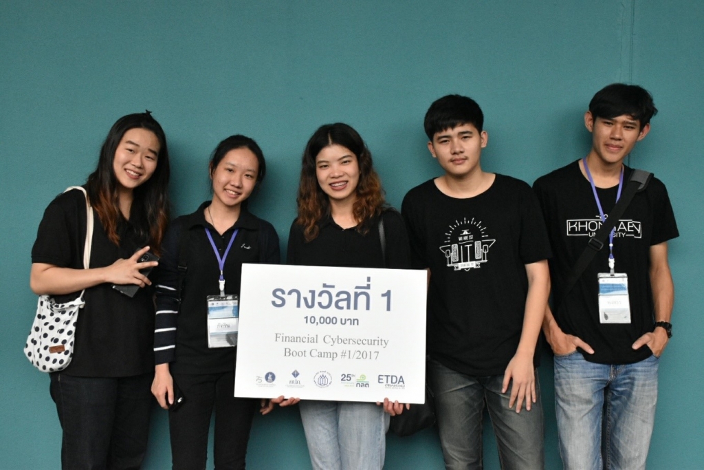เมื่อวันที่ 6 - 9 ตุลาคม พ.ศ. 2560 นักศึกษาสาขาวิทยาการคอมพิวเตอร์และสารสนเทศ คณะวิทยาศาสตร์ประยุกต์และวิศวกรรมศาสตร์ มหาวิทยาลัยขอนแก่น วิทยาเขตหนองคาย ได้เข้าร่วมโครงการอบรมงานบูทแคมป์ความมั่นคงปลอดภัยไซเบอร์ทางการเงินซึ่งช่วงที่ 1 ณ สำนักบริการคอมพิวเตอร์ มหาวิทยาลัยเกษตรศาสตร์ (บางเขน) กรุงเทพมหานคร โดย เป็นการร่วมมืออย่างเป็นทางการจากธนาคารแห่งประเทศไทย สำนักงานคณะกรรมการกำกับหลักทรัพย์และตลาดหลักทรัพย์ สำนักงานคณะกรรมการกำกับและส่งเสริมการประกอบธุรกิจประกันภัย สํานักงานพัฒนาธุรกรรมทางอิเล็กทรอนิกส์(องค์การมหาชน) สมาคมธนาคารไทย บริษัท McAfee Thailand บริษัท Symantec Thailand, บริษัท IBM และบริษัท RSA ซึ่งจัดอบรมให้ความรู้แก่นิสิตนักศึกษาจากมหาวิทยาลัยต่าง ๆ รวม 60 คน โดยได้รับความรู้และประสบการณ์จากผู้เชี่ยวชาญจากหลากหลายหน่วยงาน ทางอาจารย์ ดร. ศรัญญา กัลย์จาฤก ผู้นำนักศึกษาสาขาวิทยาการคอมพิวเตอร์และสารสนเทศ คณะวิทยาศาสตร์ประยุกต์และวิศวกรรมศาสตร์ มหาวิทยาลัยขอนแก่น วิทยาเขตหนองคาย เข้าร่วมโครงการ จำนวน 3 คน ประกอบไปด้วยนายชยังกูร โตนา รหัสนักศึกษา 593410002-7 นายนพัทธ์ ศรีจันทพงศ์ รหัสนักศึกษา 593410051-4 และนายพงศธร กิตติเคนา รหัสนักศึกษา 593410056-4