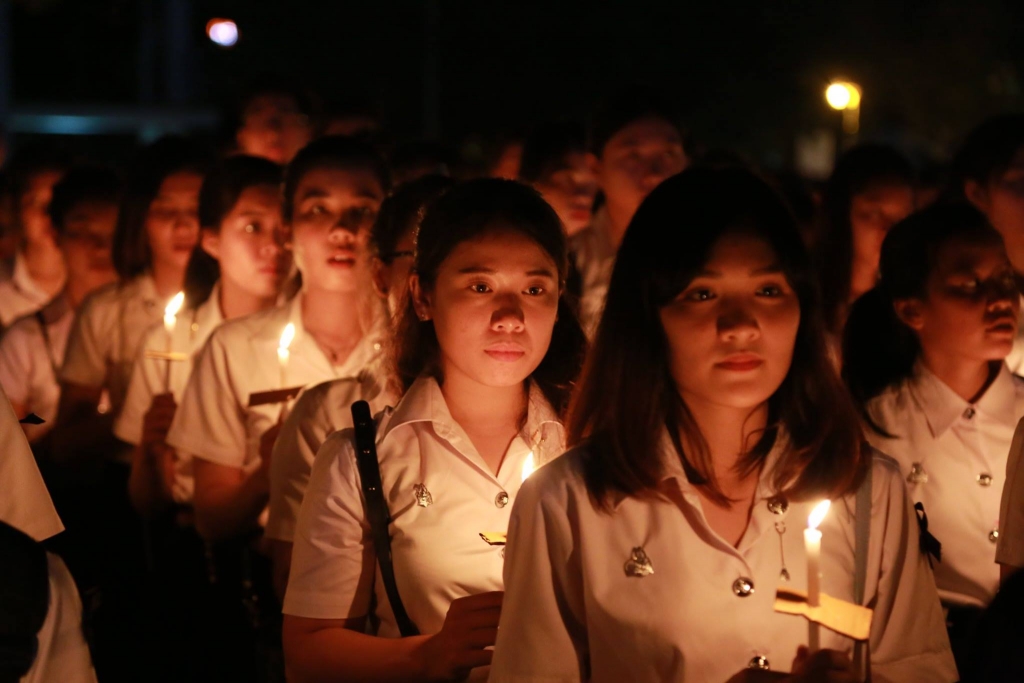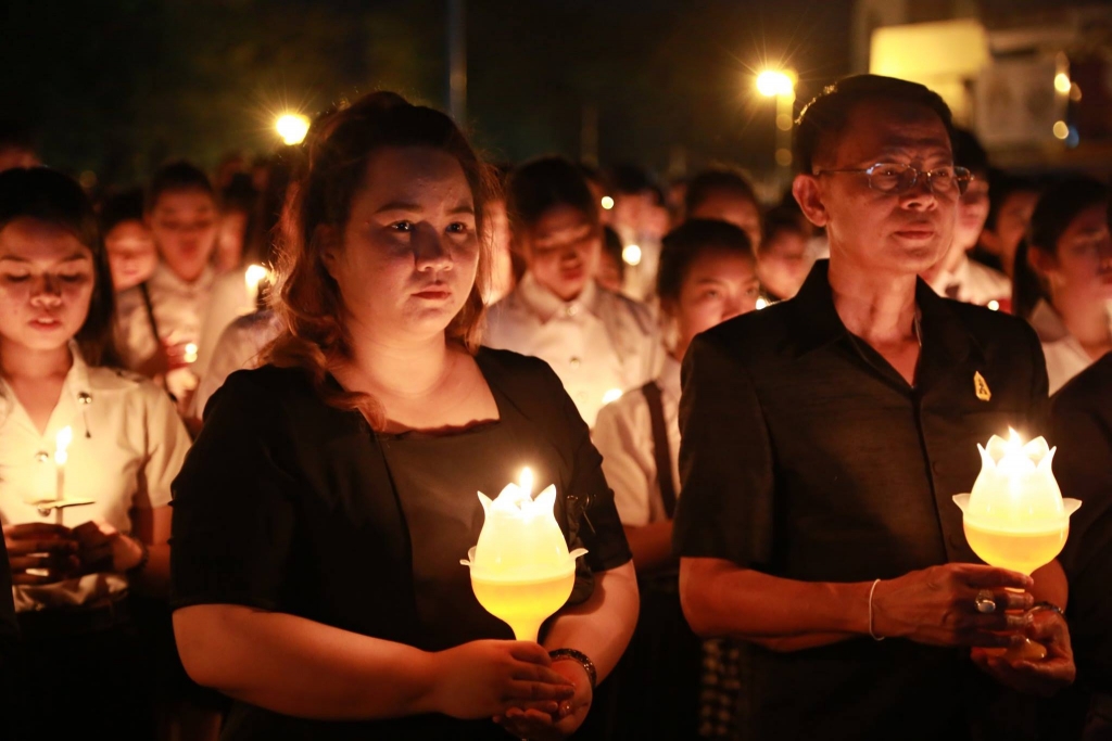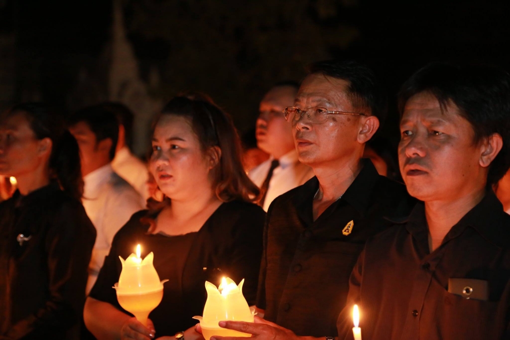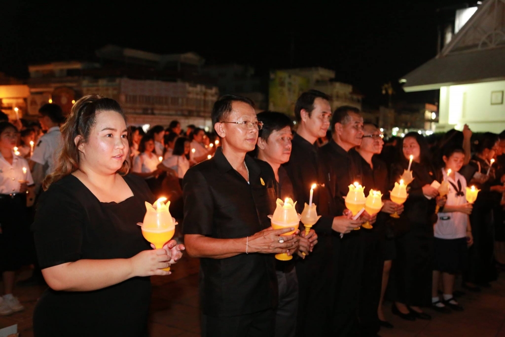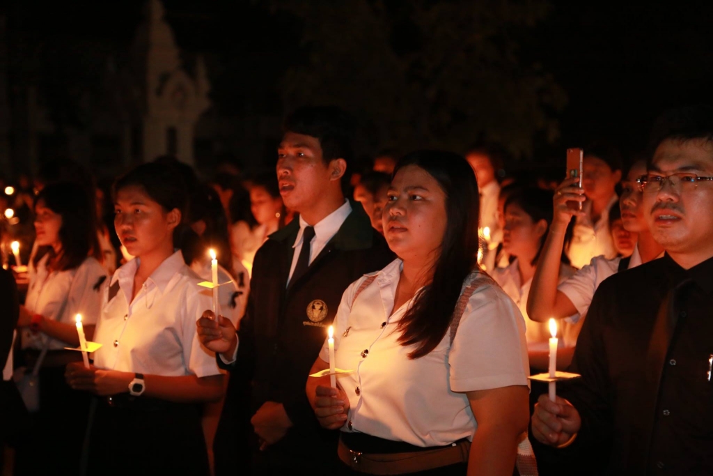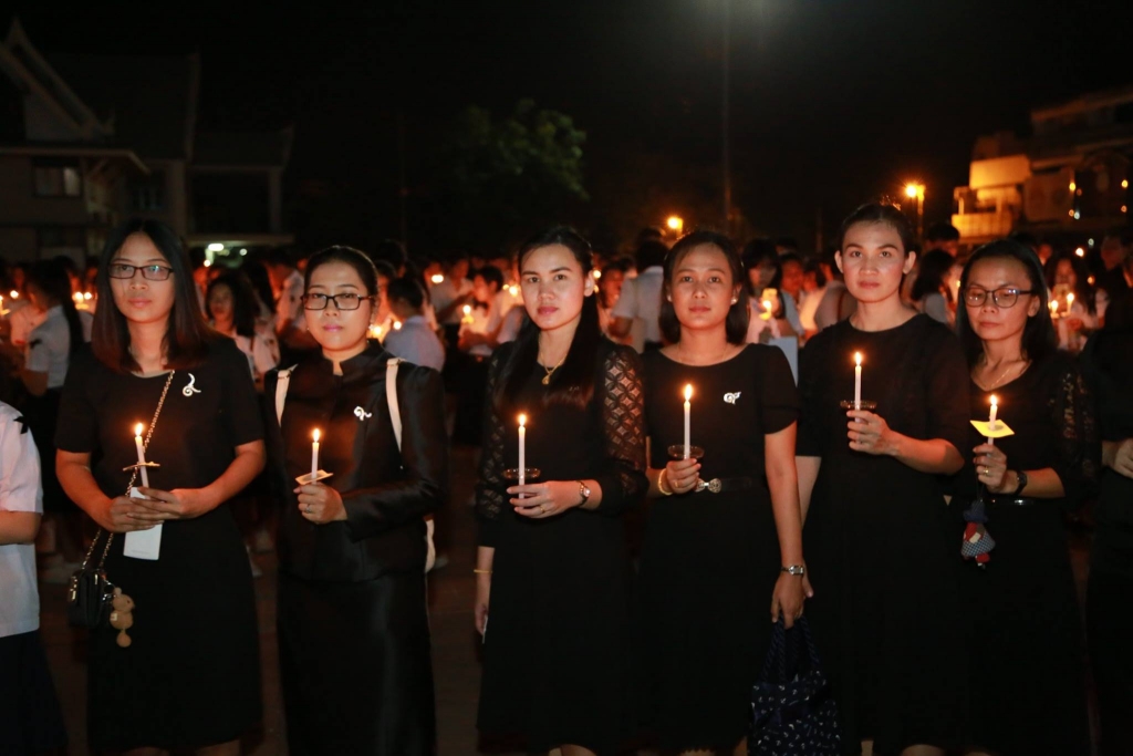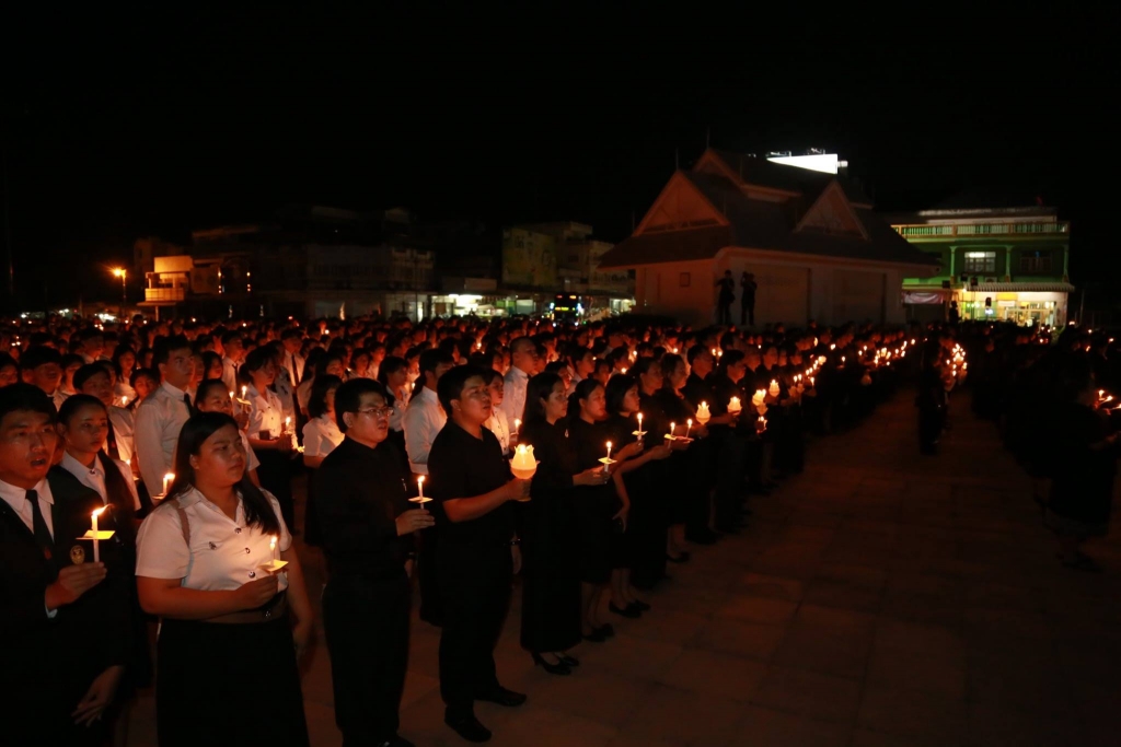วันที่ 13 ตุลาคม 2560 เวลา 18.00 น. ผู้ช่วยศาสตราจารย์ ดร.เกียรติ แสงอรุณ รองอธิการบดีวิทยาเขตหนองคาย พร้อมทั้งคณาจารย์ บุคลากร นักศึกษามหาวิทยาลัยขอนแก่น วิทยาเขตหนองคาย และประชาชนชาวจังหวัดหนองคาย รวมใจเป็นหนึ่งเดียว ร่วมจุดเทียนน้อมรำลึกในพระมหากรุณาธิคุณ และแสดงความอาลัยพระบาทสมเด็จพระปรมินทรมหาภูมิพลอดุลยเดช เนื่องในวันครบรอบ 1 ปี วันสวรรคต 13 ตุลาคม 2560 ณ ลานน้ำพุพญานาค เขตเทศบาลเมืองหนองคาย