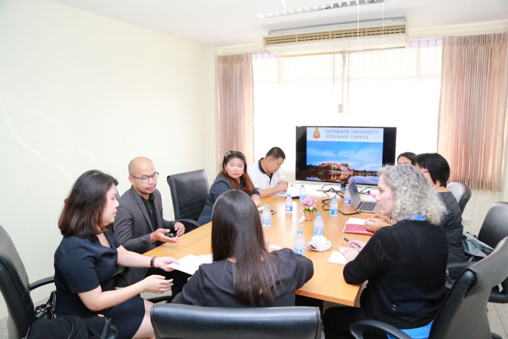 เมื่อวันจันทร์ที่ 16 ตุลาคม 2560 ผู้ช่วยศาสตราจารย์ ดร.นงราม เหมือนฤทธิ์ คณบดีคณะวิทยาศาสตร์ประยุกต์และวิศวกรรมศาสตร์ มหาวิทยาลัยขอนแก่น วิทยาเขตหนองคาย พร้อมคณะให้การต้อนรับ Dr.Alyssa Nota CEO/President of UASC (USAC : University Studies Aboard Consortium) พร้อมด้วยคุณฉายดรุณ ทิพวรรณ ผู้อำนวยการโครงการยูแสคประเทศไทย เพื่อสร้างความร่วมมือทางวิชาการ ในประเด็นการจัดหลักสูตรที่มีการสอนเป็นภาษาอังกฤษ และการดูแลนักศึกษาต่างชาติจากประเทศสหรัฐอเมริกา พร้อมทั้งประชุมหารือถึงแนวทางความพร้อมในการแลกเปลี่ยนนักศึกษาและเยี่ยมชมทัศนศึกษา ณ วิทยาเขตหนองคาย