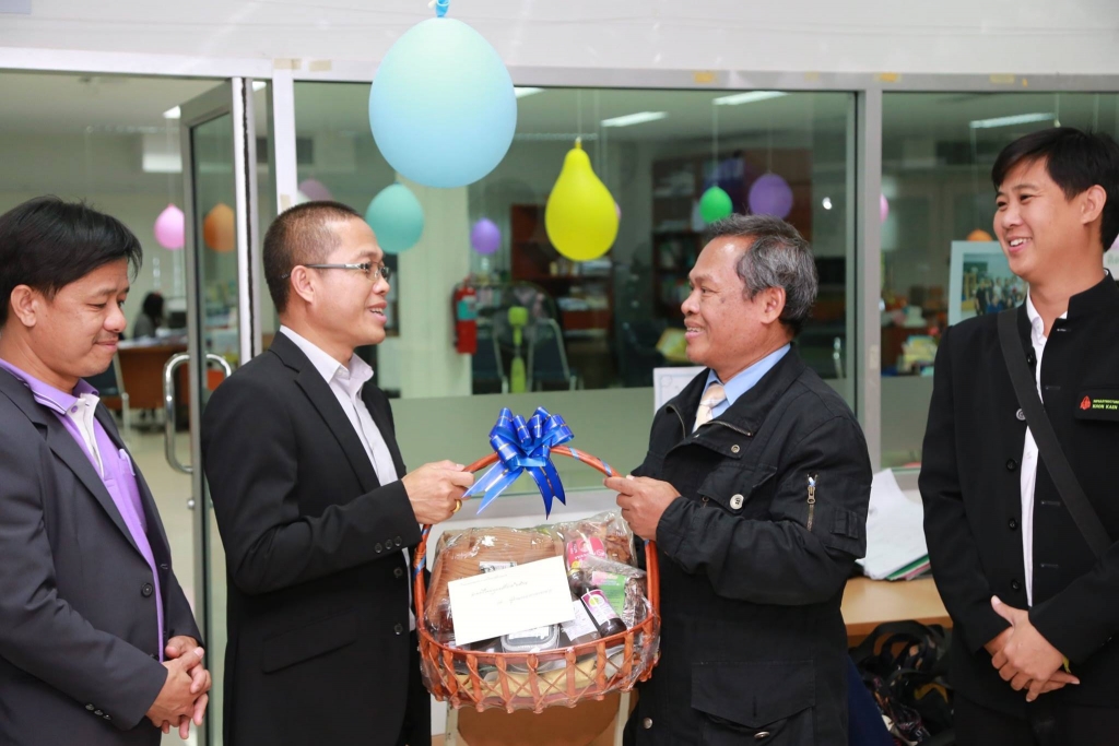 เมื่อวันพุธที่ 27 ธ.ค.60 ณ ตึกสิริคุณากร ชั้น 6 มหาวิทยาลัยขอนแก่น ผู้ช่วยศาสตราจารย์ ดร.เกียรติ แสงอรุณ รองอธิการบดีวิทยาเขตหนองคาย นำทีมคณาจารย์ พร้อมทั้งบุคลากร วิทยาเขตหนองคาย มอบกระเช้าขอพรอธิการบดีและคณะผู้บริหาร มหาวิทยาลัยขอนแก่น เพื่อเยี่ยมคารวะเนื่องในเทศกาลปีใหม่ 2561 เพื่อเป็นการขอพรและขอบคุณที่ได้ให้ความร่วมมือ สนับสนุน การดำเนินงานของ วิทยาเขตหนองคายมาโดยตลอด