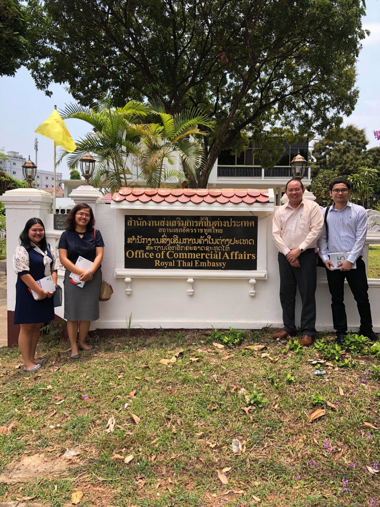 วันที่ 19 เมษายน 2561 ผู้ช่วยศาสตราจารย์ ดร.ธเนศ วัฒนกูล สาขาเศรษฐศาสตร์ คณะสังคมศาสตร์บูรณาการ มหาวิทยาลัยขอนแก่น วิทยาเขตหนองคาย หัวหน้าโครงการวิจัยมุ่งเป้า สกว. ปีงบประมาณ 2560 พร้อมด้วย ดร.มัลลิกา สมพลกรัง และอาจารญ์ปรัชญา หมื่นอภัย นักวิจัย และ นางสาวเคียงขวัญ ลี้ไพบูลย์ ผู้ช่วยวิจัย ได้เดินทางไปสัมภาษณ์และเก็บข้อมูล ที่สำนักงานส่งเสริมการค้าต่างประเทศ ณ นครหลวงเวียงจันทน์ สปป.ลาว ได้รับความอนุเคราะห์สัมภาษณ์อัครราชทูตที่ปรึกษา (ฝ่ายการพาณิชย์) และเจ้าหน้าที่สำนักงาน เกี่ยวกับข้อมูลการลงทุนโดยตรงจากต่างประเทศและประเทศไทย ในสปป.ลาว ข้อมูลพื้นฐานเศรษฐกิจของสปป.ลาว นโยบายการส่งเสริมการลงทุนและพัฒนาอุตสาหกรรมของสปป.ลาว การร่วมลงทุนในอุตสาหกรรมนำ้มันปาล์มในสปป.ลาว แนวทางการเตรียมตัวและปรับตัวของนักลงทุนต่างชาติที่ร่วมลงทุนในสปป.ลาว เพื่อเป็นข้อมูลวิจัยโครงการการศึกษาโอกาสและความเป็นไปได้ในการร่วมลงทุนระหว่างประเทศไทย สปป.ลาว และประเทศจีน กรณีศึกษาอุตสาหกรรมผลิตสอนค้าเพื่อการส่งออก (นำ้มันปาล์ม)