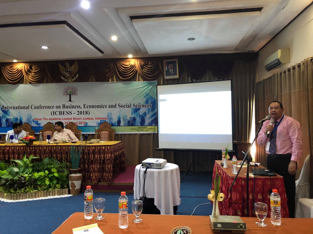 ระหว่างวันที่ 24-25 เมษายน 2561 ผู้ช่วยศาสตราจารย์ ดร.ธเนศ วัฒนกูล สาขาเศรษฐศาสตร์ คณะสังคมศาสตร์บูรณาการ มหาวิทยาลัยขอนแก่น วิทยาเขตหนองคาย ได้เข้าร่วมประชุมแลัวนำเสนอบทความวิจัย ในการประชุมวิชาการนานาชาติ International Conference on Business, Economics and Social Sciences 2018 (ICBESS 2018) ที่ Jayakarta Beach and Resort เมือง Lombok ประเทศอินโดนีเซีย โดยนำเสนอบทความวิจัยเรื่อง Factors Influencing Demand for Luxury Goods Import of Thailand: A Panel Data Aproach