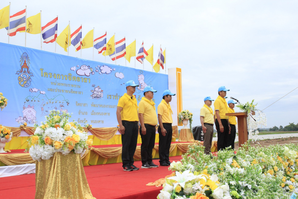 โดยประธานในพิธีนายรณชัย จิตรวิเศษ ผู้ว่าราชการจังหวัดหนองหนองคาย ได้นำกล่าวคำปฏิญาณ จิตอาสา จะทำความ ดี ด้วยหัวใจ พร้อมกันนี้ ประชาชนจิตอาสายังได้พร้อมใจกันปลูกต้นไม้ ปลูกหญ้าแฝก และปล่อยพันธุ์ปลา จำนวนกว่า 400,000 ตัว เป็นการสร้างพลังแห่งความสามัคคี รวมถึงเป็นสัญลักษณ์ที่แสดงถึงความจงรักภักดี และเทิดทูนสถาบันพระมหากษัตริย์สืบต่อไป