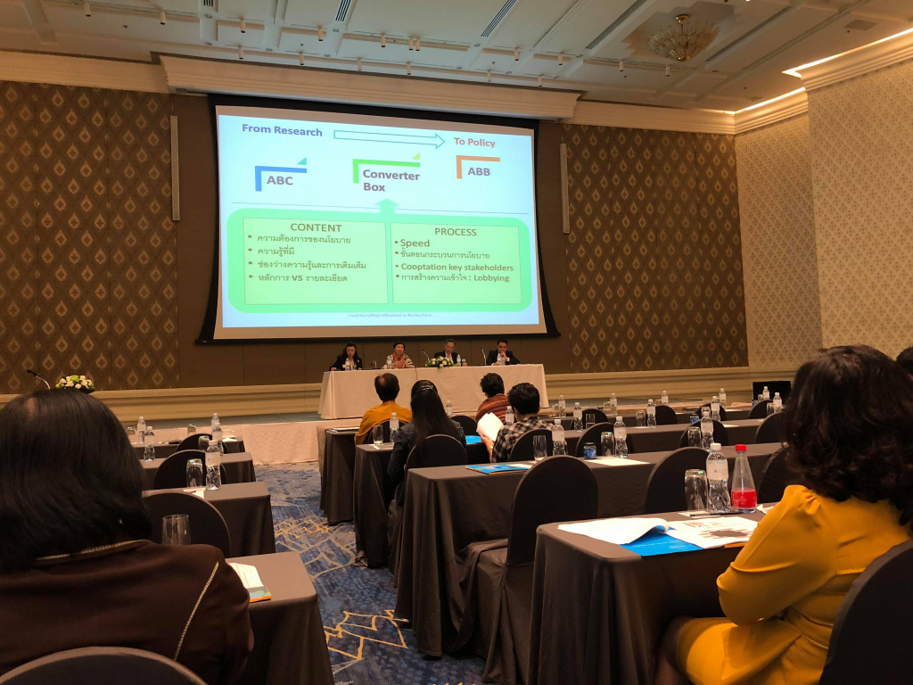 วันที่ 24 กรกฎาคม 2561 ผุู้ช่วยศาสตราจารย์ ดร.ธเนศ วัฒนกูล อาจารย์ประจำสาขาเศรษฐศาสตร์ คณะสังคมศาสตร์บุรณาการ มหาวิทยาลัยขอนแก่น วิทยาเขตหนองคาย หัวหน้าโครงการวิจัยมุ่งเป้า ปีงบประมาณ 2560 ที่ได้รับทุนสนับสนุนการวิจัยจากสำนักงานกองทุนวิจัยแห่งชาติ (สกว.) เรื่อง การศึกษาโอกาสและความเป็นไปได้ในการร่วมลงทุนระหว่างประเทศไทย สปป.ลาว และจีน กรณีศึกษา อุตสาหกรรมการผลิตสินค้าเพื่อการส่งออก (นำ้มันปาล์ม) ได้รับเชิยและเข้าร่วมการเสวนา การผลักดันงานวิจัยและการเขียนรายงานวิจัย เพื่อใช้ประโยชน์ในเชิงนโยบาย ที่จัดโดย ฝ่ายส่งเสริมการใช้ประโยชน์เชิงนโยบายจากงานวิจัย สำนักงานกองทุนวิจัยแห่งชาติ
