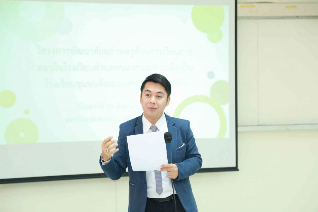 มข.วิทยาเขตหนองคาย จัดบริการวิชาการแก่ชุมชน พัฒนาศักยภาพครูด้านการเรียนการสอนในโรงเรียนตำบลหนองกอมเกาะเพื่อเป็นโรงเรียนชุมชนต้นแบบเศรษฐกิจพอเพียง