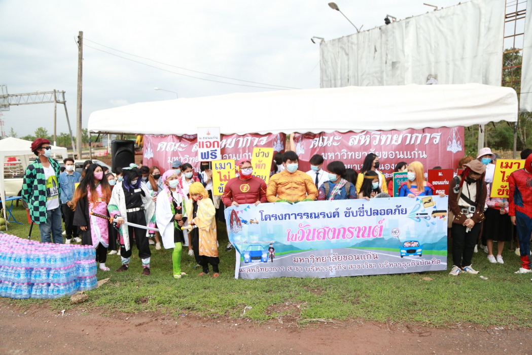 ผู้ช่วยศาสตราจารย์ดร.ณัฐพล ไตรเพิ่ม รองคณบดีคณะสหวิทยาการ นำนักศึกษาคณะสหวิทยาการ มหาวิทยาลัยขอนแก่น วิทยาเขตหนองคาย แต่งกายด้วยชุดคอสเพลย์ ชุดเหล่าซูเปอร์ฮีโร่ สร้างสีสัน ร่วมรณรงค์ขับขี่ปลอดภัยในช่วงเทศกาลสงกรานต์ ก่อนร่วมเดินรณรงค์ได้มีการตรวจวัดอุณภูมิ สวมหน้ากากอนามัยนักศึกษาเพื่อป้องกันโรคโควิด-19 และมีการแจกน้ำดื่ม มะพร้าวน้ำหอม ข้าวโซย ลูกอม หน้ากากอนามัย และผ้าเย็น เดินแจกจ่ายให้กับผู้ใช้รถใช้ถนน ซึ่งได้รับการตอบรับที่ดีจากผู้ใช้รถใช้ถนนทุกคน ต่างให้ความสนใจอย่างมาก