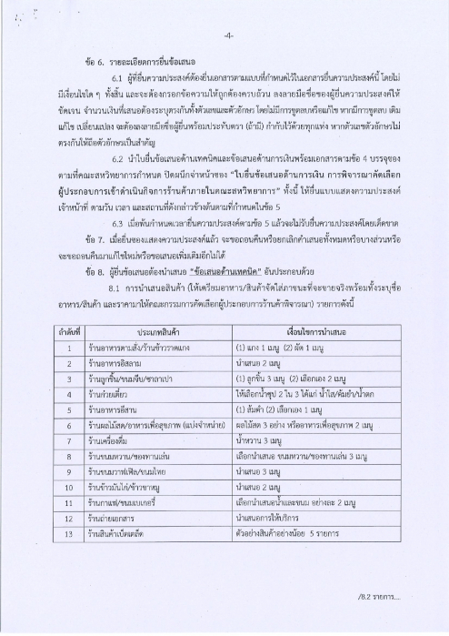 ประกาศรายชื่อผู้มีสิทธิ์เข้ารับการพิจารณา "ประเภทร้านค้า" ณ โรงอาหารกลาง (คอมเพล็กซ์)