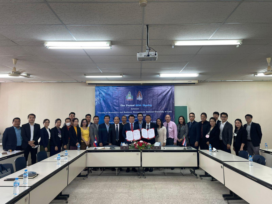 คณะเศรษฐศาสตร์และบริหารธุรกิจ มหาวิทยาลัยแห่งชาติลาว มีความโดดเด่นด้านการพัฒนาการเป็นผู้ประกอบการและนวัตกรรมในอนุภูมิภาคลุ่มแม่น้ำโขง (GMS) และการร่วมมือครั้งนี้เป็นอีกหนึ่งวิสัยทัศน์ที่สำคัญของมหาวิทยาลัยขอนแก่น ที่จะสร้างกรอบความร่วมมือกับประเทศในกลุ่ม GMS หรือ Greater Mekong Sub-region และเดิมคณะบริหารธุรกิจ มหาวิทยาลัยขอนแก่น วิทยาเขตหนองคาย และ Faculty of Economics and Business Management, National University of Laos มีความร่วมมือทางวิชาการกันหลายด้าน เช่น การประชุมวิชาการระดับนานาชาติ จำนวน 4 ครั้ง ด้านการบริการวิชาการ ด้านการเรียนการสอน ด้านการแลกเปลี่ยนอาจารย์ ด้านการแลกเปลี่ยนนักศึกษา ด้านการวิจัย อีกด้วย