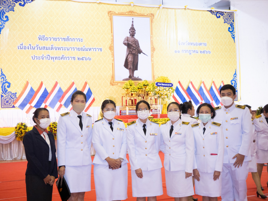 เมื่อช่วงเช้าวันที่ 11 กรกฎาคม 2566 คณะสหวิทยาการ มหาวิทยาลัยขอนแก่น นำโดยรองศาสตราจารย์ ดร.ภัทรียา ลาสุนนท์ รองคณบดีคณะสหวิทยาการพร้อมด้วยบุคลากร เข้าร่วมพิธีถวายราชสักการะเนื่องใน “วันสมเด็จพระนารายณ์มหาราช” ประจำปีพุทธศักราช 2566 ณ หอประชุมประจักษศิลปาคม ศาลากลางจังหวัดหนองคาย อ.เมือง จ.หนองคาย มีนายราชันย์ ซุ้นหั้ว ผู้ว่าราชการจังหวัดหนองคาย เป็นประธานในพิธีถวายราชสักการะ สมเด็จพระนารายณ์มหาราช เป็นพระราชโอรสในสมเด็จพระเจ้าปราสาททอง ขึ้นเสวยราชสมบัติเป็นพระมหากษัตริย์องค์ที่ 27 แห่งกรุงศรีอยุธยา เสวยราชย์ที่กรุงศรีอยุธยาได้ประมาณ 10 ปี จึงทรงมีพระราชดำริให้สถาปนาเมืองเก่า คือเมืองลวธานีหรือลพบุรีในปัจจุบันเป็นราชธานีที่สอง พระองค์ทรงเป็นกษัตริย์นักรบผู้กล้าหาญ ทรงปกครองอาณาประชาราษฎร์ด้วยทศพิธราชธรรม โดยเฉพาะอย่างยิ่งพระราชกรณียกิจที่เกี่ยวกับการเจริญสัมพันธไมตรีกับต่างประเทศ ทรงเป็นพระมหากษัตริย์เพียงพระองค์เดียวในบูรพาประเทศที่เป็นมิตรและสนิทสนมกับชาวยุโรป เป็นผลให้เกิดการถ่ายเทอารยธรรม ยังความเจริญ ในด้านการศึกษา วิทยาศาสตร์ การค้า และสถาปัตยกรรมแก่สยามประเทศ นอกจากนี้ พระองค์ยังทรงมีพระปรีชาในด้านศิลปะวรรณคดีเป็นอย่างดียิ่ง ได้ทรง พระราชนิพนธ์วรรณคดีไทยไว้หลายเรื่อง สมเด็จพระนารายณ์มหาราชเสด็จดำรงราชสมบัตินานถึง 32 ปี จึงทรงพระประชวร และเสด็จสวรรคต เมื่อวันที่ 11 กรกฎาคม พุทธศักราช 2231 สิริรวมพระชนมายุได้ 56 พรรษา