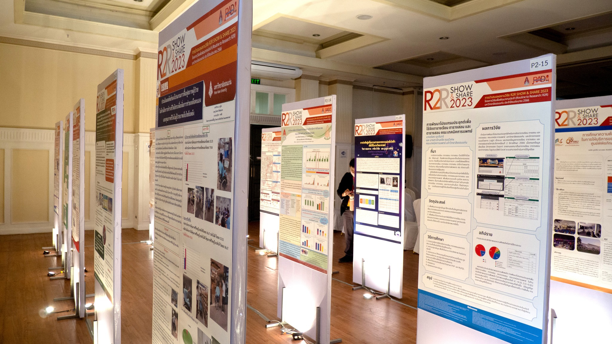 วันที่ 28 พฤศจิกายน พ.ศ. 2566 ณ ห้องประชุมแกรนด์พาวิลเลี่ยน โรงแรมราชาวดี รีสอร์ท แอนด์ โฮเทล ฝ่ายวิจัยและบัณฑิตศึกษา โดยกองบริหารงานวิจัย ได้จัดกิจกรรมการนำเสนอผลงานวิจัย R2R Show & Share 2023 โดยมี รองศาสตราจารย์ปณิธาน พีรพัฒนา ประธานคณะกรรมการผู้ทรงคุณวุฒิโครงการวิจัยเพื่อพัฒนางานประจำ (Routine to research: R2R) กล่าวรายงานชี้แจงวัตถุประสงค์ในการดำเนินงาน และได้รับเกียรติจาก ศาสตราจารย์มนต์ชัย ดวงจินดา รองอธิการบดีฝ่ายวิจัยและบัณฑิตศึกษา เป็นประธานในพิธีและกล่าวเปิดงาน และได้รับเกียรติจากคณะกรรมการ ผู้ทรงคุณวุฒิฯ ผู้บริหาร และหัวหน้าส่วนงานเข้าร่วมพิธีเปิดในครั้งนี้ โดยวัตถุประสงค์ในการจัดงานครั้งนี้ เพื่อเป็นเวทีแลกเปลี่ยนเรียนรู้และนำเสนอผลงานวิจัย R2R ระหว่างนักวิจัย และหน่วยงานภายในมหาวิทยาลัยขอนแก่น ได้แบ่งการนำเสนอเป็น 2 รูปแบบ คือ การนำเสนอในรูปแบบ Oral Presentation จำนวน 27 ผลงาน และ การนำเสนอแบบ Poster Presentation จำนวน 50 โครงการ