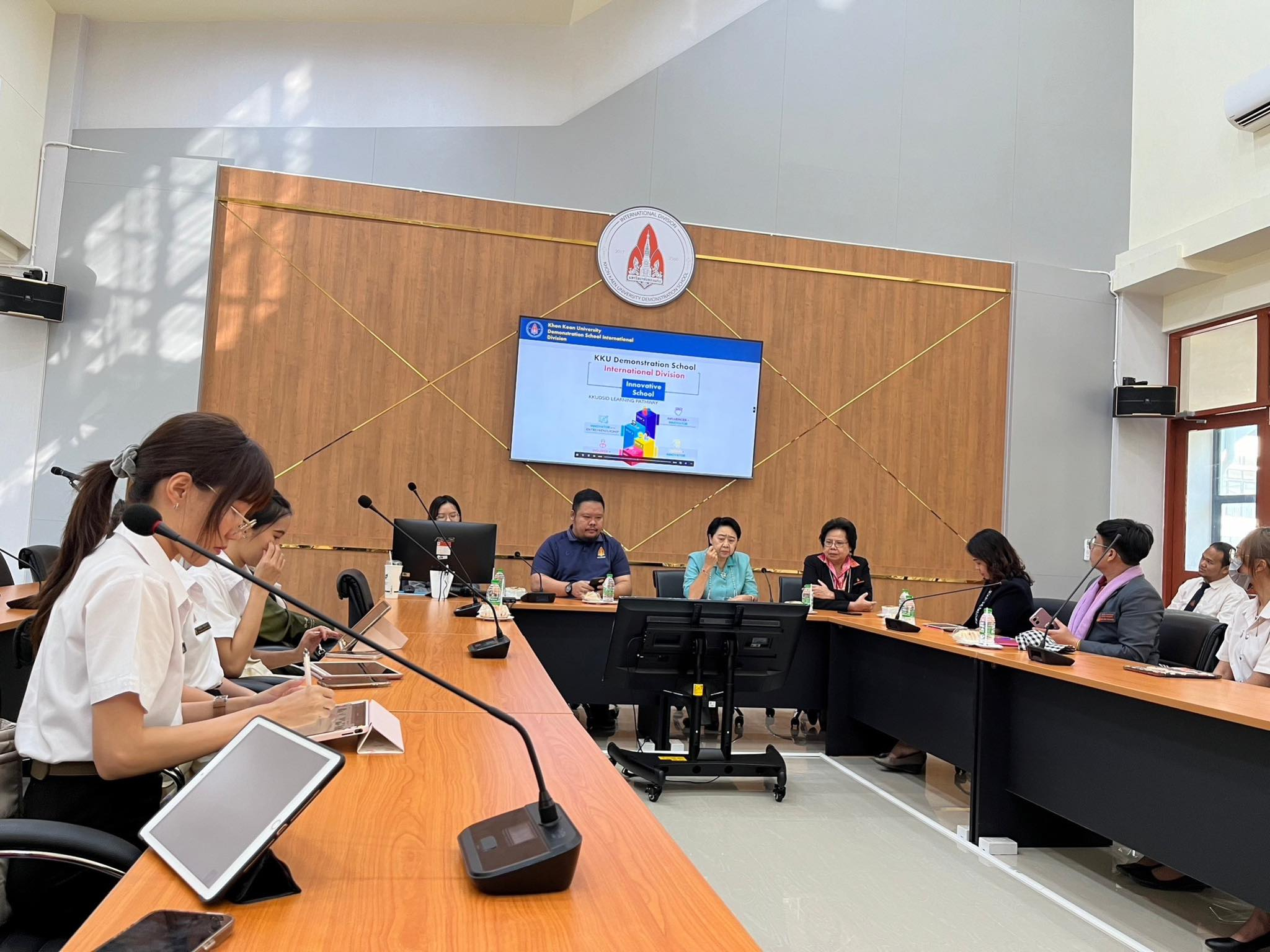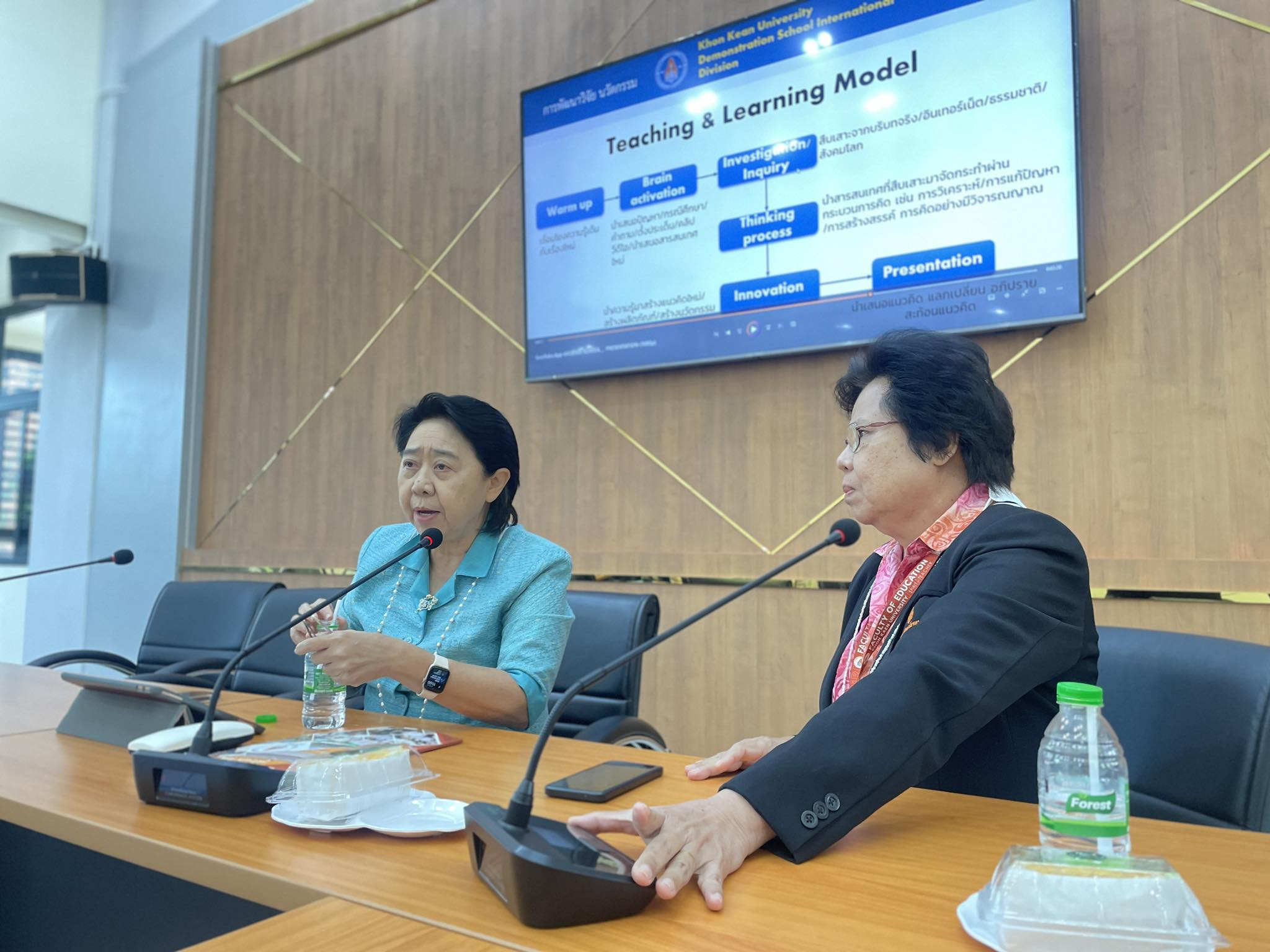 นอกจากนี้ นักศึกษายังได้เข้าศึกษาดูงาน ณ โรงเรียนสาธิตมหาวิทยาลัยขอนแก่น ฝ่ายประถมศึกษา (ศึกษาศาสตร์) เพื่อร่วมแลกเปลี่ยนเรียนรู้ในประเด็น “เทคนิคและแนวทางการจัดกิจกรรมการเรียนรู้วิชาภาษาอังกฤษสำหรับนักเรียนระดับประถมศึกษา” และศึกษาการจัดการเรียนรู้ที่มุ่งสร้างผู้เรียนให้เป็นนวัตกรที่มีความคิดสร้างสรรค์ (Creative Innovator) และการจัดการเรียนรู้แบบยูนิต (Unit) ที่จะช่วยสนับสนุนให้ผู้เรียนเรียนรู้ตามความสามารถและความสนใจของตนได้ โดยได้รับการต้อนรับจาก อาจารย์ปิลันธนา ศุภดล รักษาการแทนรองผู้อำนวยการและเหล่าคณาจารย์ในโรงเรียนฯ