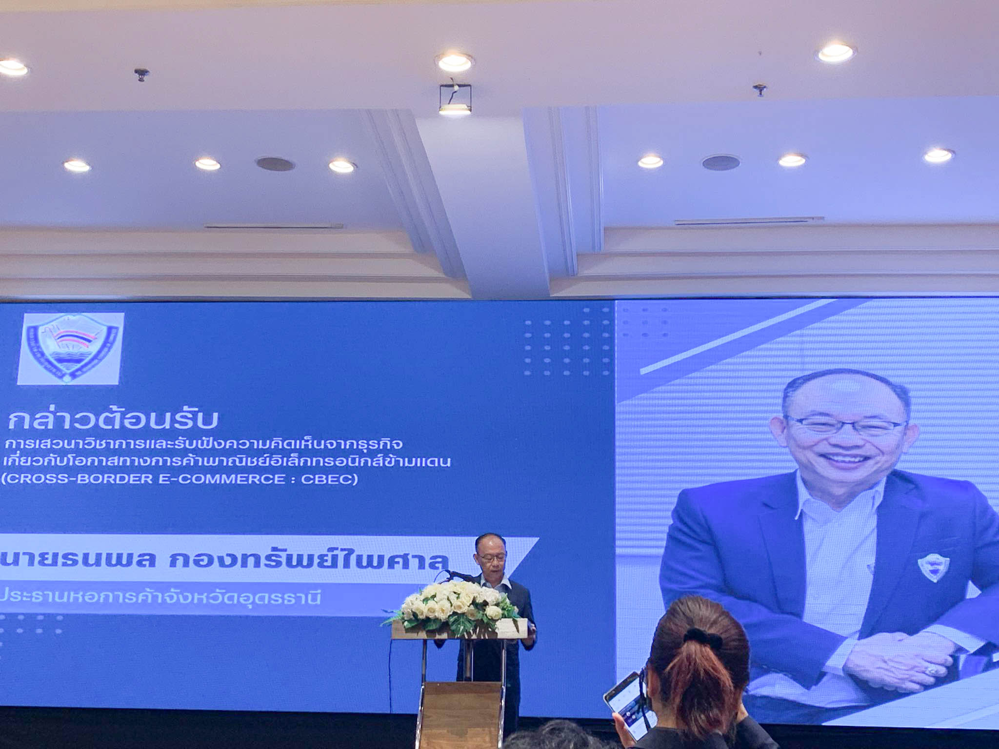 วันที่ 29 มิถุนายน 2567 รองศาสตราจารย์ ดร.ธเนศ วัฒนกูล หัวหน้าสาขาสังคมศาสตร์ และประธานหลักสูตรเศรษฐศาสตรมหาบัณฑิต สาขาเศรษฐศาสตร์ระหว่างประเทศและการท่องเที่ยว คณะสหวิทยาการ มหาวิทยาลัยขอนแก่น นำนักศึกษาสาขาเศรษฐศาสตร์ระหว่างประเทศ นวัตกรรม และความยั่งยืน ชั้นปีที่ 2 และ 3 เข้าร่วมการเสวนาวิชาการและรับฟังความคิดเห็นจากภาคธุรกิจเกี่ยวกับโอกาสทางการค้า พาณิชย์อิเล็กทรอนิกส์ ข้ามพรมแดน (CROSS-BORDER E-COMMERCE: CBEC) ณ โรงแรมแรมเซ็นทารา จังหวัดอุดรธานี ซึ่งได้รับเกียรติจาก วิทยากร ที่มากด้วยความรู้ความสามารถ ร่วมกันถ่ายทอดความรู้ในการเสวนาครั้งนี้ อีกยังเป็นการเรียนรู้นอกห้องเรียนและเปิดประสบการณ์ใหม่ๆ เกี่ยวกับโอกาสทางการค้า ข้ามพรมแดน และมีผู้ที่สนใจเข้าร่วมรับฟังเสวนานี้เป็นจำนวนมาก