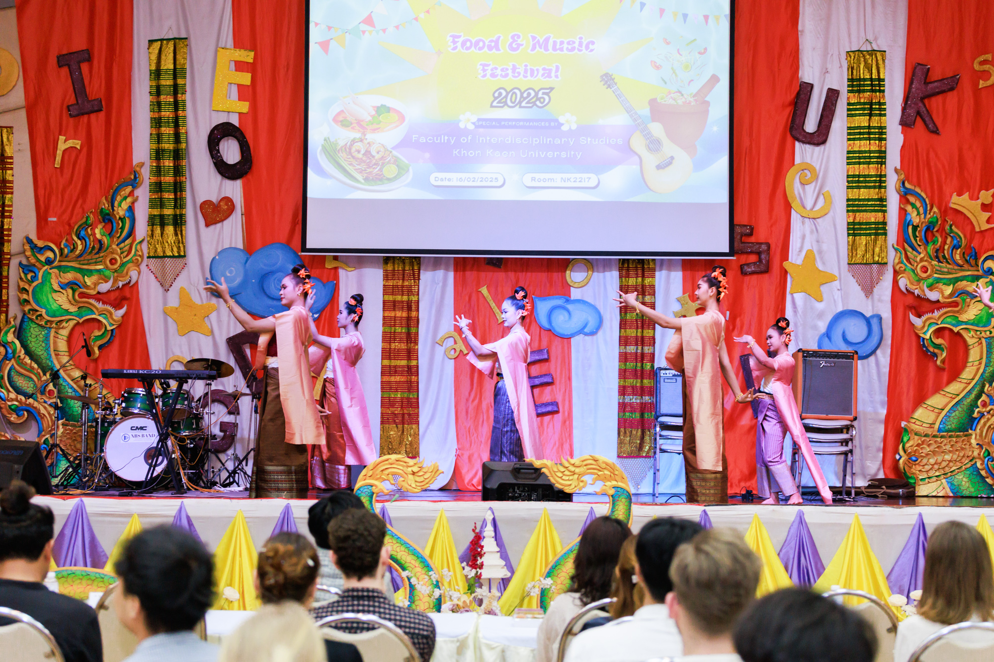 คณะสหวิทยาการ มหาวิทยาลัยขอนแก่น ได้เล็งเห็นถึงความสำคัญในการสร้างเครือข่ายความร่วมมือกับประเทศในอนุภูมิภาคลุ่มน้ำโขง หรือสถาบันในต่างประเทศเพื่อยกระดับด้านการศึกษา วิจัย และบริการ (International Networking) จึงได้กำหนดจัด โครงการ Food & Music Festival 2025 (FMF 2025) ภายใต้ โครงการจัดทำ MOU และสร้างเครือข่ายความร่วมมือทางวิชาการและวิจัยกับสถาบันต่างประเทศ เพื่อเป็นการส่งเสริมให้นักศึกษาคณะสหวิทยาการ ได้มีโอกาสทำกิจกรรมร่วมกับนักศึกษาต่างชาติ และเพื่อเผยแพร่วัฒนธรรมไทยผ่านการจัดกิจกรรม อาทิ การแสดงวิถีชีวิตวัฒนธรรมและสถานที่ท่องเที่ยวในจังหวัดหนองคาย การแสดงดนตรี และซุ้มอาหารไทย โดย นักศึกษาหลักสูตรการสอนภาษาอังกฤษในฐานะภาษาต่างประเทศ (TEFL) เป็นการสร้างการมีส่วนร่วมและเผยแพร่ศิลปวัฒนธรรมให้แก่นักศึกษาต่างชาติ ณ ห้องประชุม NK2217 อาคารเรียนรวมและปฏิบัติการ 1 คณะสหวิทยาการ มหาวิทยาลัยขอนแก่น