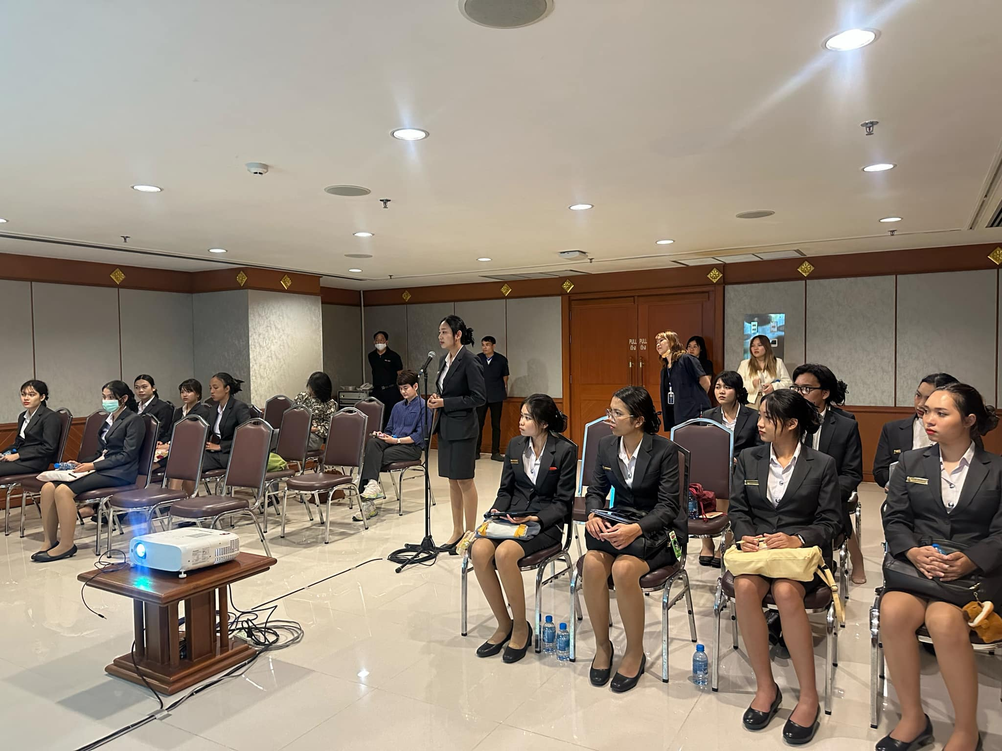 วันที่ 5 มีนาคม 2568 เข้าพบคุณธเนศ ศุภรสหัสรังสี นายกสมาคมสมาพันธ์ท่องเที่ยวชลบุรี และคุณชัยรัตน์ รัตโนภาส นายกสมาคมสปาและเวลเนสภาคตะวันออก รับฟังการบรรยายให้ความรู้ กับหัวข้อ "บทบาทสมาคมท่องเที่ยวในการขับเคลื่อนเศรษฐกิจพัทยา" "กลยุทธ์การฟื้นฟูและสร้างความสามารถในการแข่งขัน" รวมถึงการถ่ายทอดความรู้และประสบการณ์ด้านการท่องเที่ยวเชิงสุขภาพ กลุ่มนักท่องเที่ยวคุณภาพ และการจัดการการท่องเที่ยวอย่างยั่งยืน และเยี่ยมชมการบริหารจัดการโรงแรม Ravindra Beach Resort and Spa ช่วงบ่ายเยี่ยมชมการดำเนินงานภาคส่วนต่างๆ ในกลุ่ม Royal Cliff Pattaya และรับฟังบรรยาย Hotel and Venue Management Strategies & Sustainable Hotel and Venue และช่วงท้ายการดูงานมีการเปิดโอกาสให้นักศึกษาได้ซักถามทำความเข้าใจเพิ่มเติมถึงการจัดการ Venue และการดำเนินงาน Green Hotel